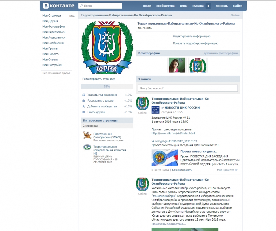 Территориальная избирательная комиссия Октябрьского района теперь и ВКонтакте!