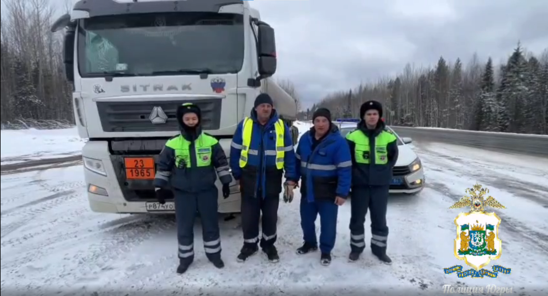 В Октябрьском районе наряду дорожно-патрульной службы Госавтоинспекции ОМВД России по Октябрьскому району в составе инспекторов Эрнеста Джамбышева и Дмитрия Остраша поступило сообщение о том, что на 70-м километре автодороги «Нягань — Талинка» произошла поломка бензовоза Sitrak с прицепом на опасном участке дороги.