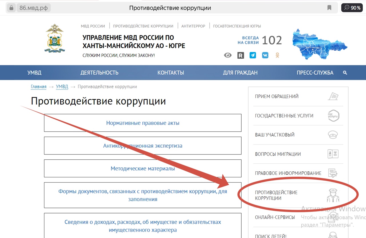 Подробную информацию вы можете получить на сайте УМВД России по ХМАО - Югре в разделе "Противодействие коррупции"