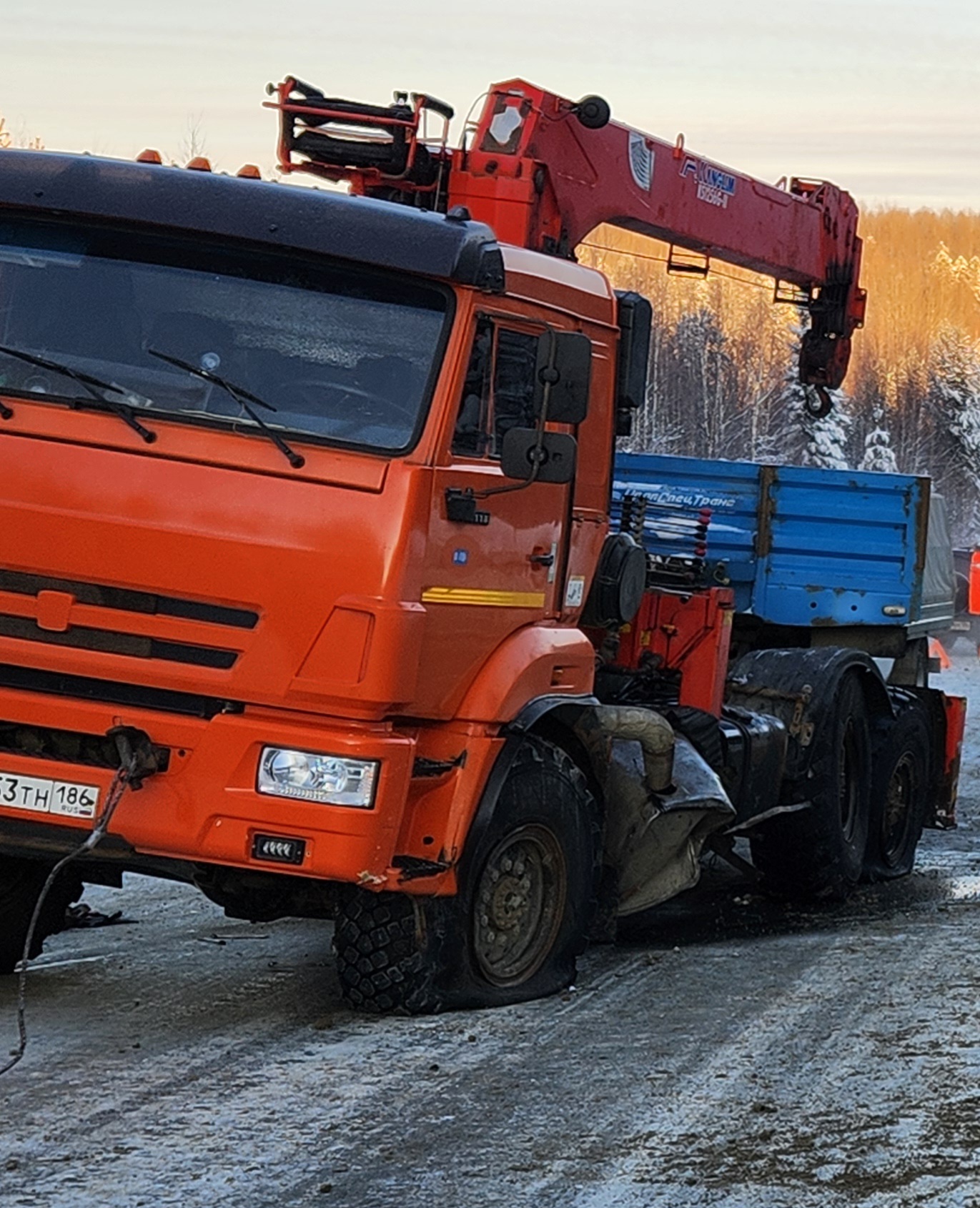 7 декабря 2025г. в 07:15 на 69 км автодороги Нягань-Талинка водитель 1994 года рождения, управляя автомобилем «КИА РИО», по предварительным данным, не выбрал безопасную скорость движения, не справился с управлением, допустил выезд на полосу встречного движения, где произошло столкновение с двигавшимся во встречном направлении транспортным средством «КАМАЗ» в составе с полуприцепом. В результате ДТП водитель и 2 пассажира «КИА РИО» получили травмы различной степени тяжести.