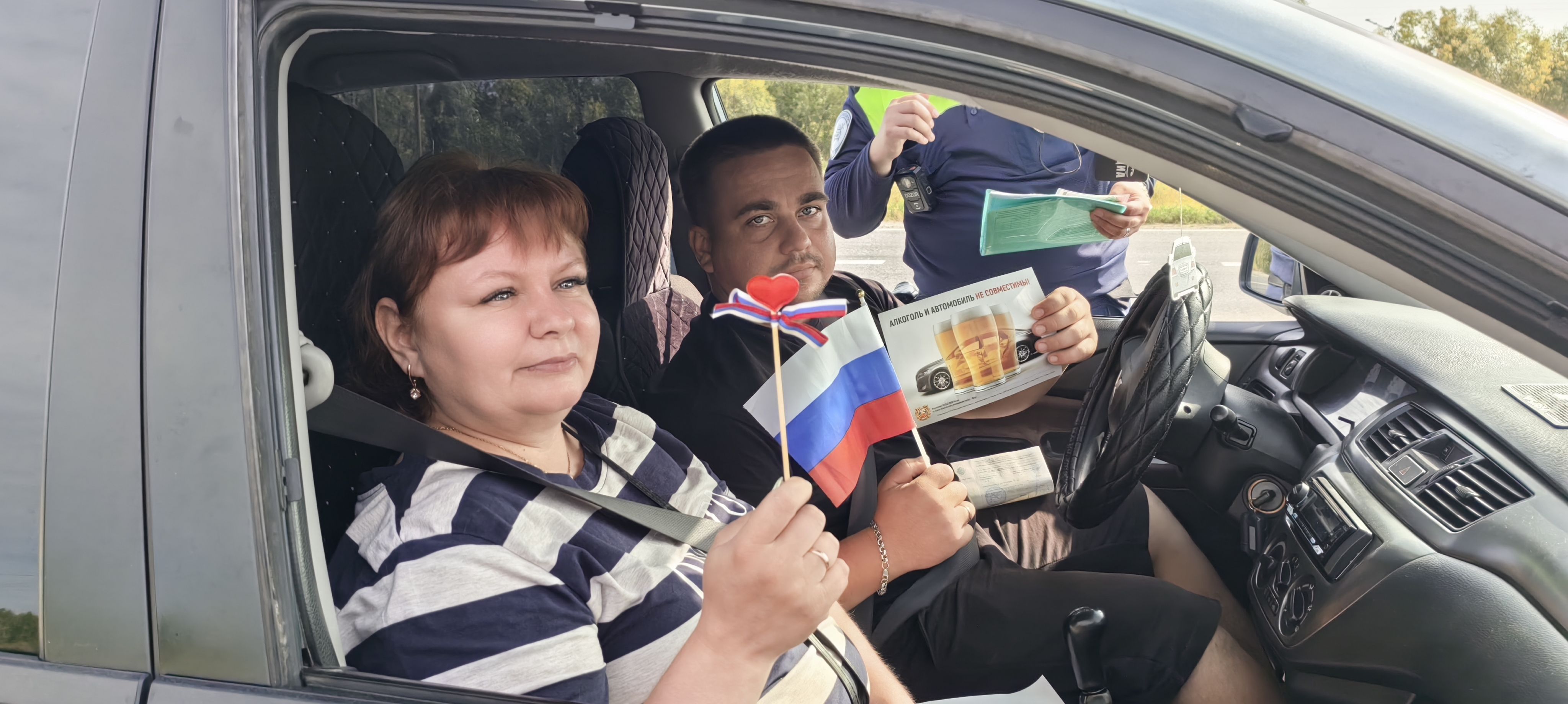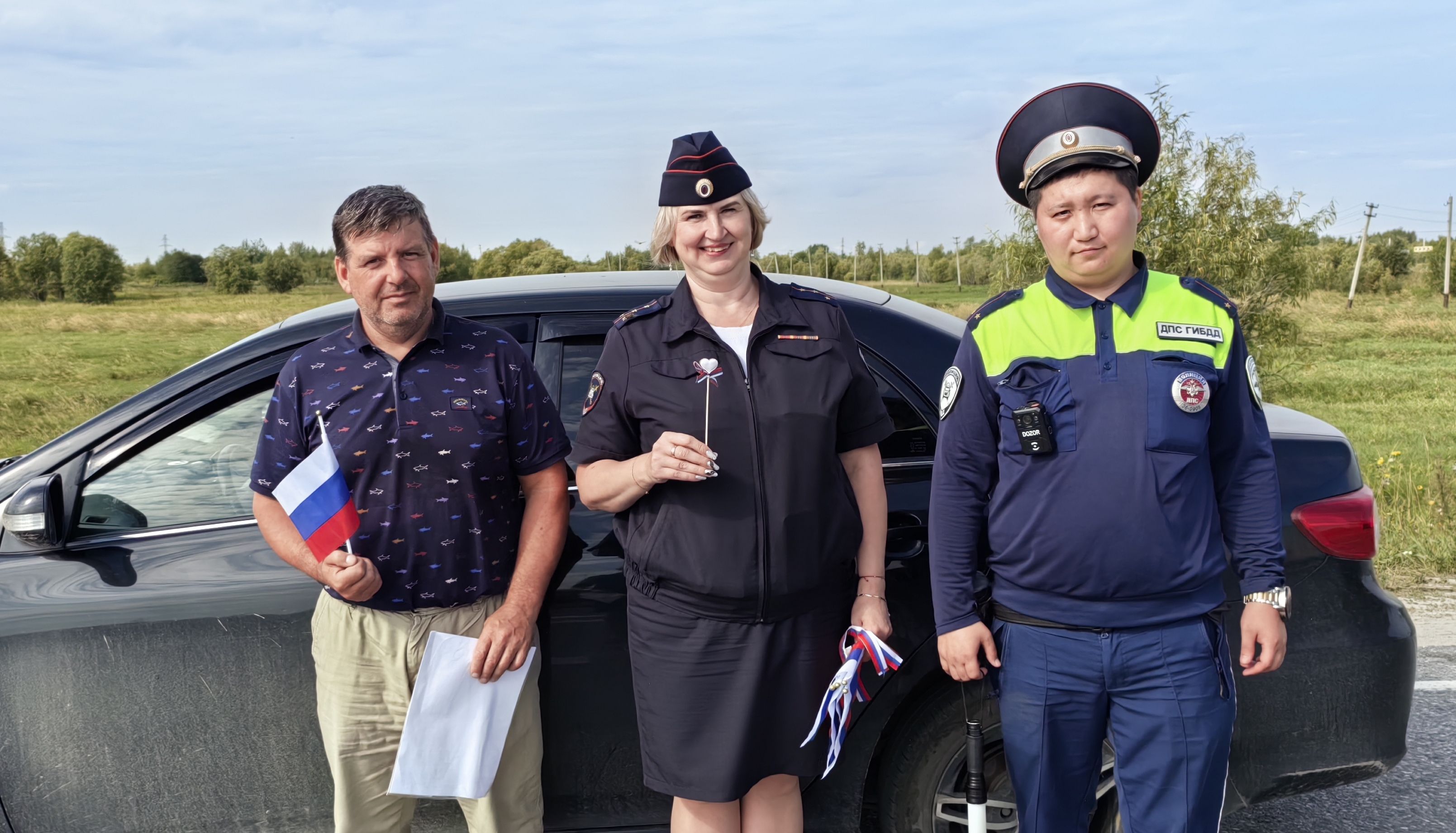 В ходе акции водителей поздравили с праздником, рассказали об истории российского триколора, которая насчитывает уже более 310 лет и о значении цветов, которые символизируют силу, веру и благородство.