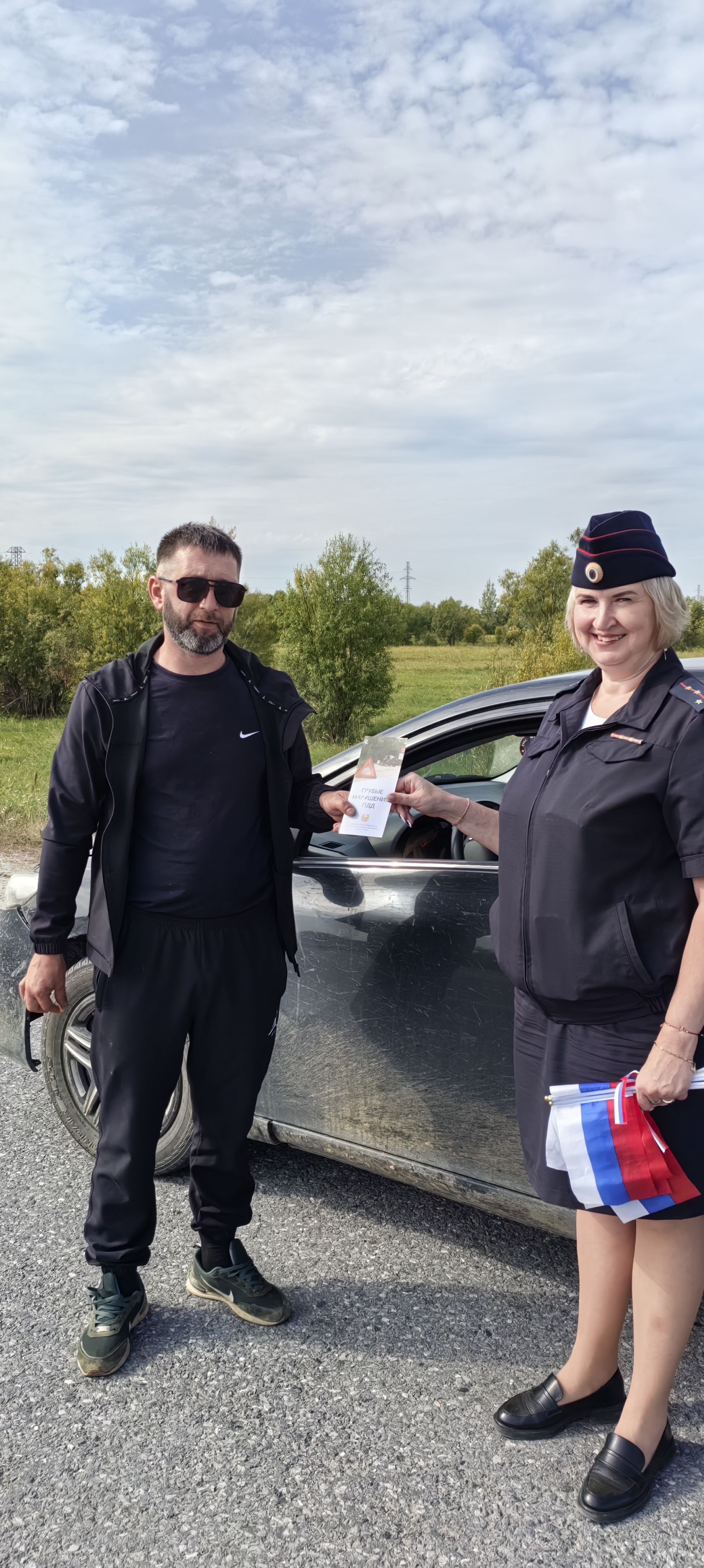 Вручая ленты триколора, флажки, буклеты, и световозвращающие наклейки, полицейские напомнили участникам дорожного движения о внимательности на дорогах, призвали всех строго соблюдать Правила дорожного движения и пожелали безопасных дорог.