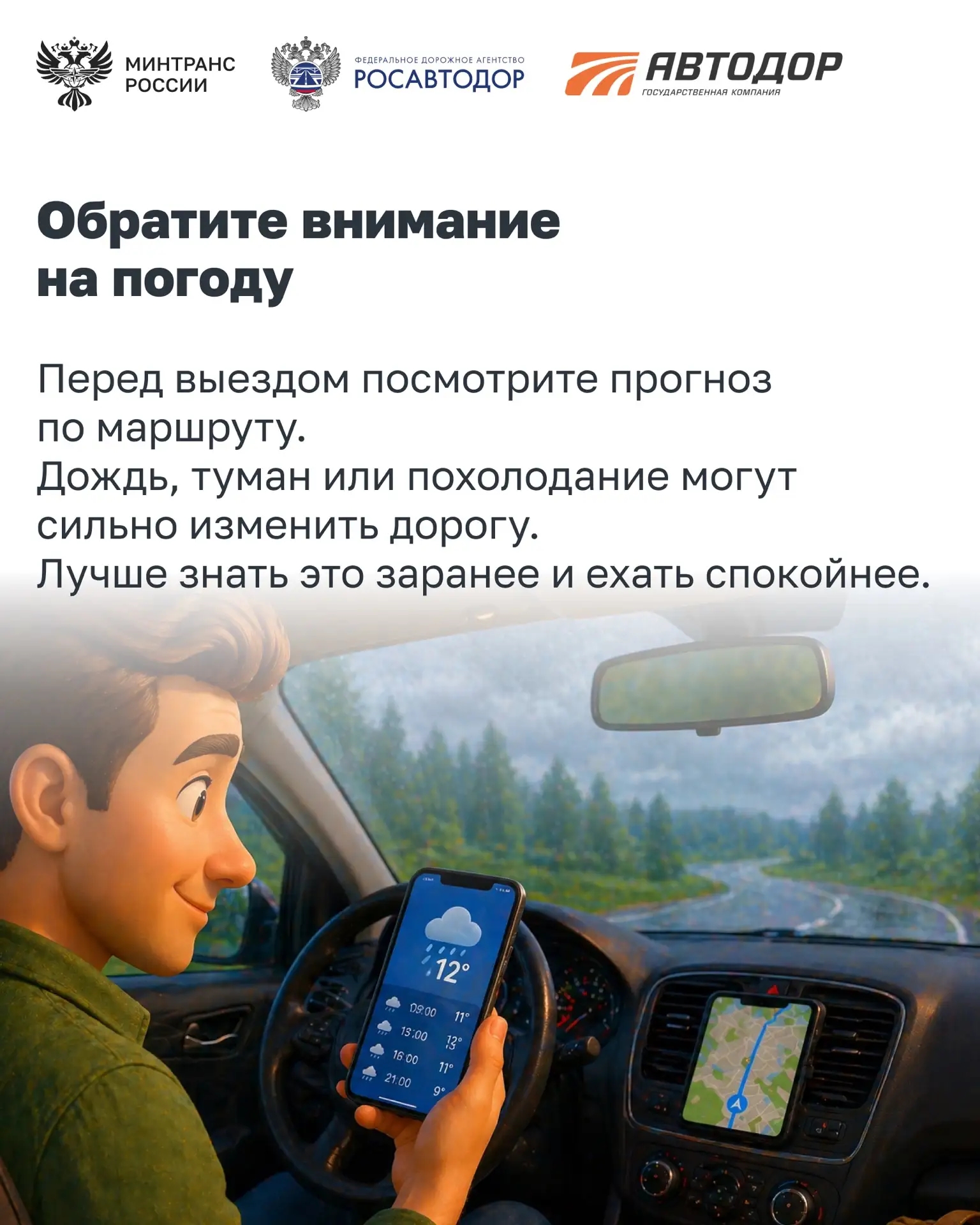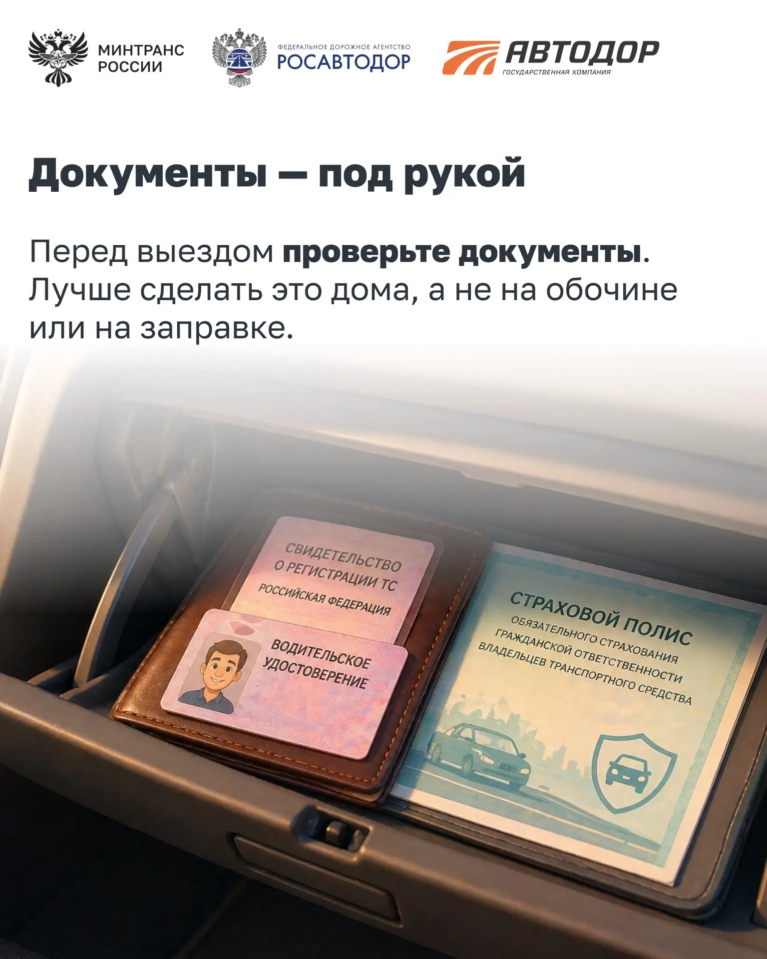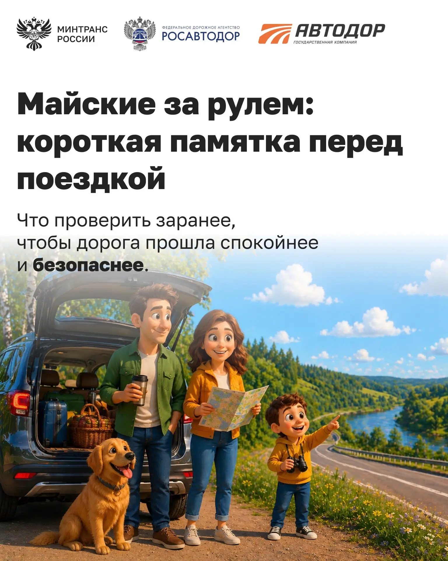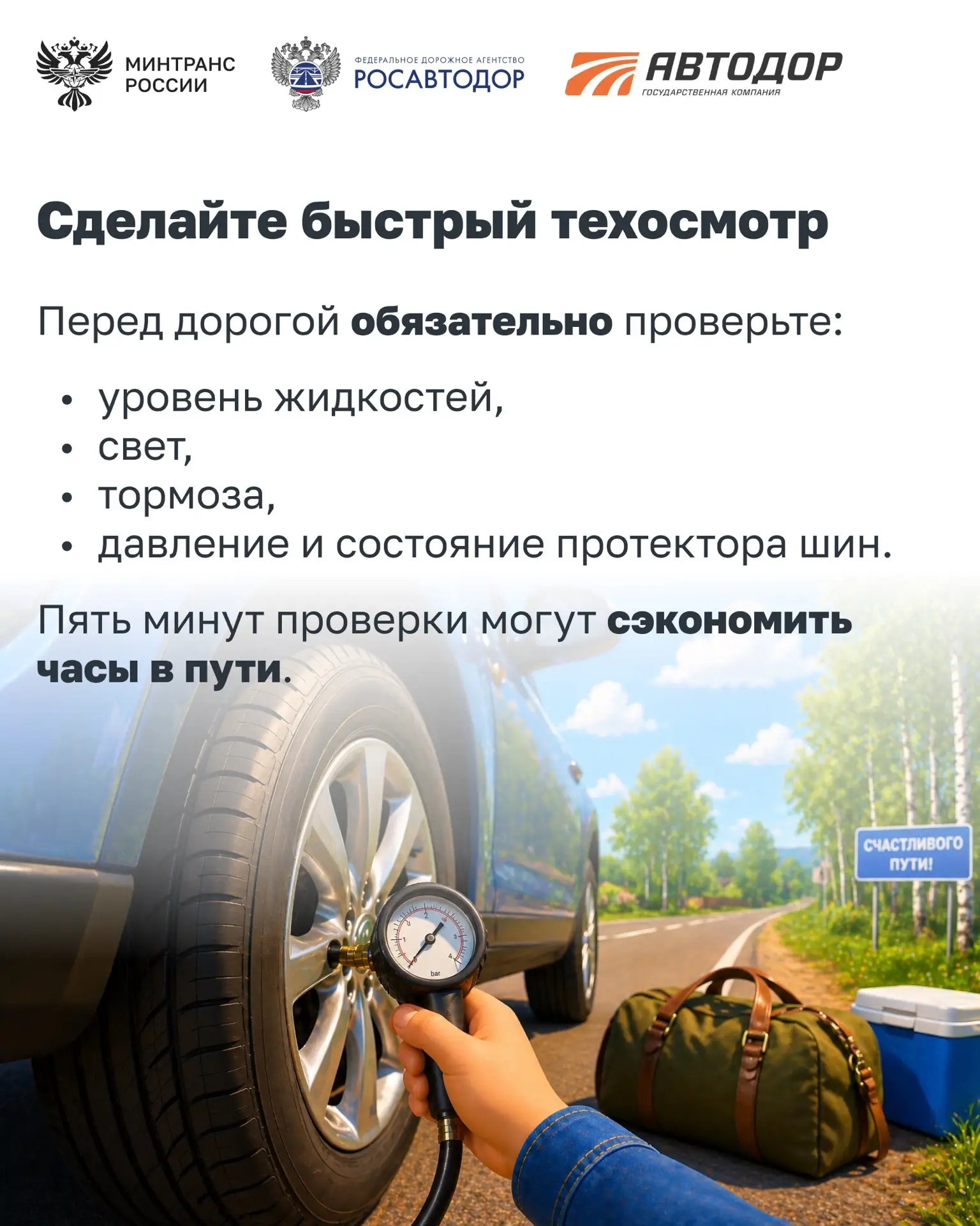 Вместе с коллегами из Росавтодора и Автодора собрали простую памятку для водителей: что проверить перед выездом и о чем важно помнить в дороге, чтобы путь был спокойнее и безопаснее.