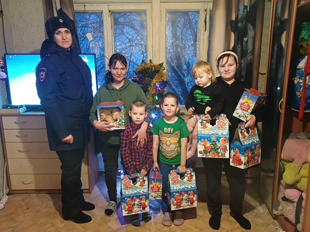 Полицейские Октябрьского района совместно со специалистом МКДНиЗП администрации Октябрьского района поздравили более 50-ти детей из семей, оказавшихся в сложной жизненной ситуации, с Новым 2026 годом.
