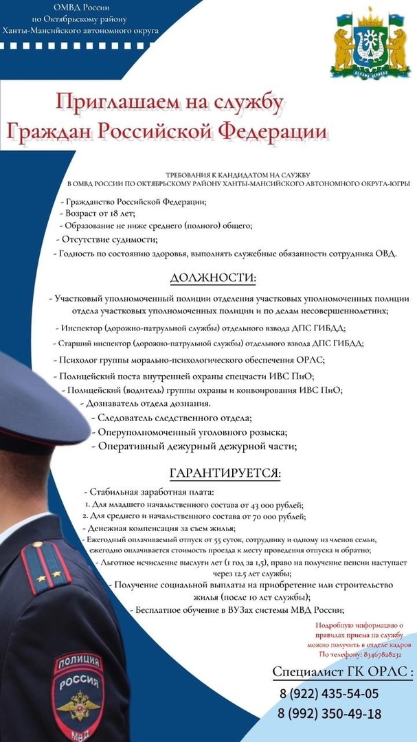 ОМВД России по Октябрьскому району приглашает на службу!