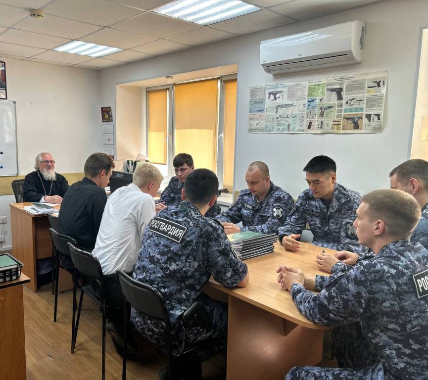 Вместе с прихожанами представители ведомства почтили память небесного покровителя Федеральной службы войск национальной гвардии Российской Федерации и поклонились его иконе.