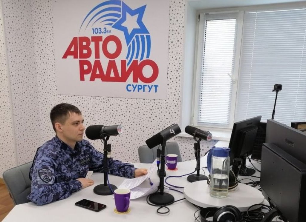 А в Сургуте специалист городского межмуниципального отдела вневедомственной охраны старший лейтенант полиции Евгений Килимбаев выступил в прямом эфире «Авторадио. Сургут». Он рассказал 700-тысячной аудитории радиослушателей об условиях поступления в вузы Росгвардии и об открытых вакансиях в подразделение вневедомственной охраны Росгвардии.