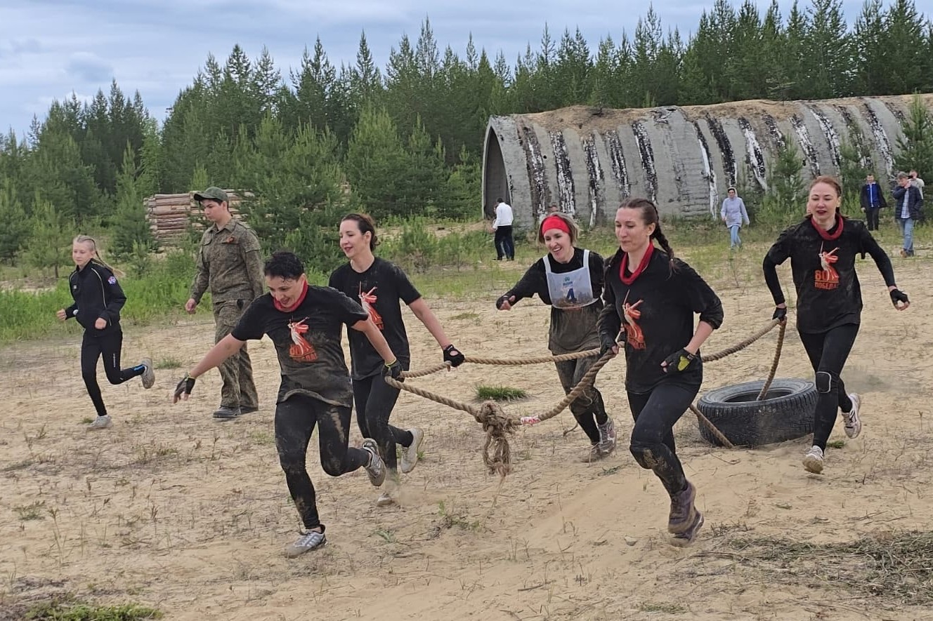 Спортсмены преодолели трассу протяженностью порядка 3 километров, включающую 15 сложнейших препятствий: бревна, шинное поле, гимнастические кольца, болото и др.