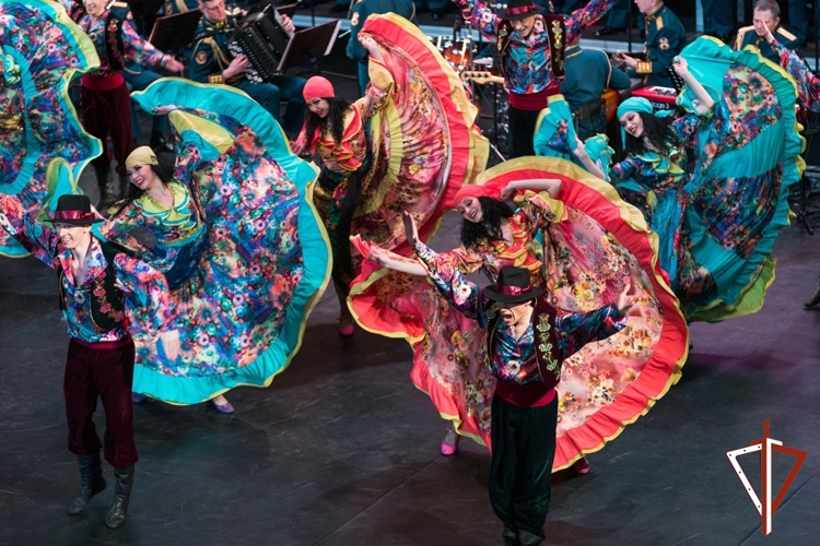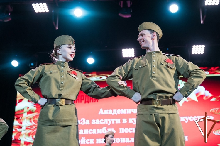 В программу вошли композиции «Священная война», «Песенка военных корреспондентов», «Выйду ночью в поле с конём», попурри, хореографические номера.