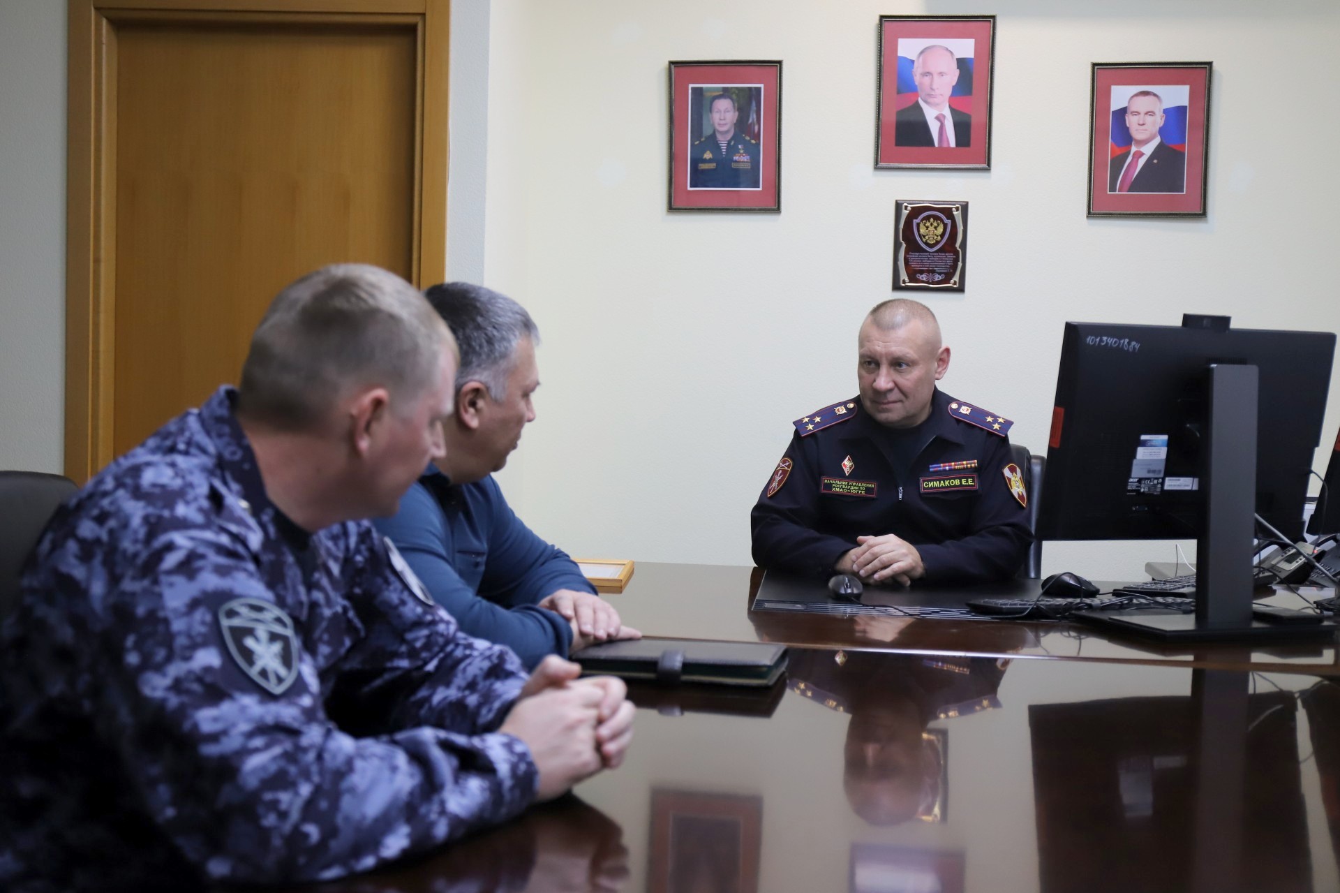 В преддверии Дня ветерана войск правопорядка начальник Управления Росгвардии по ХМАО — Югре полковник полиции Евгений Симаков провел рабочую встречу с вновь назначенным председателем Регионального отделения Общероссийской Общественной организации ветеранов войск правопорядка по ХМАО – Югре Александром Карповым.
