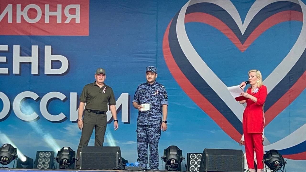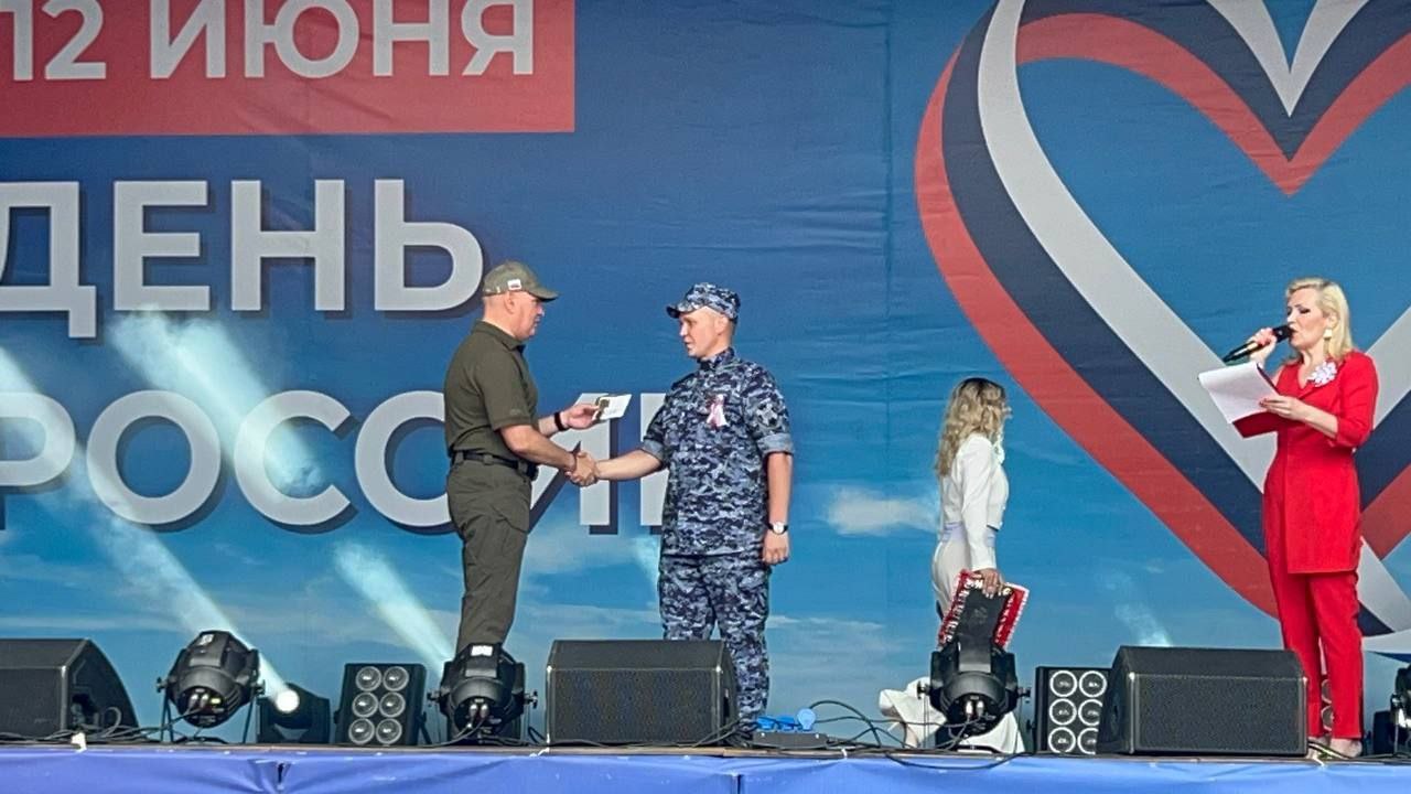 12 июня в День России на центральной площади г. Нефтеюганска глава города Юрий Чекунов вручил шестерым сотрудникам отделения лицензионно-разрешительной работы медали «За содействие СВО».