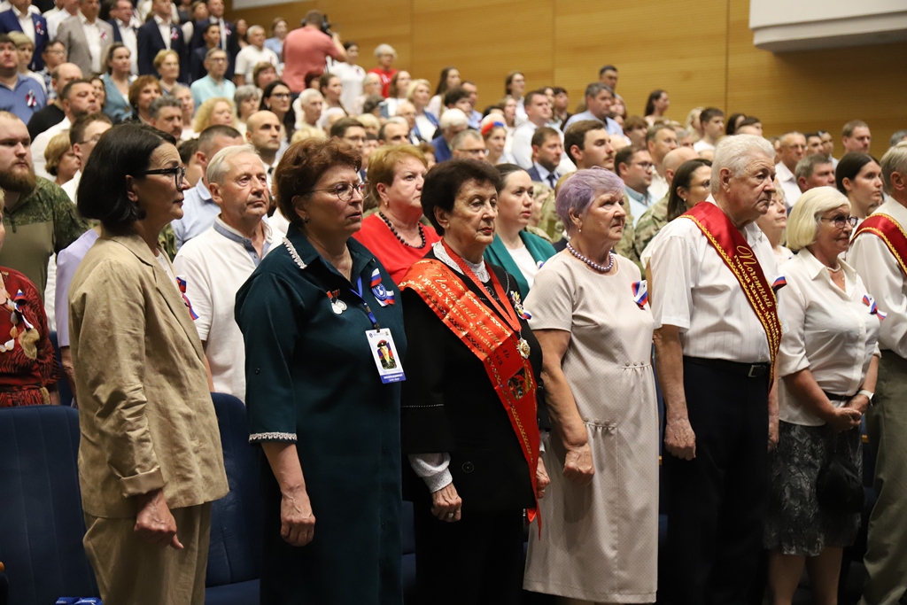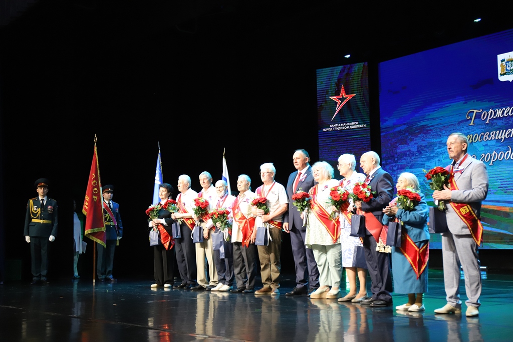 На сцене культурно-досугового центра «Октябрь» перед почетными горожанами, участниками специальной военной операции, представителями ведомства, органов власти, духовенства и общественных организаций выступили творческие коллективы и солисты окружной столицы. Они исполнили вокальные и хореографические композиции, посвященные городу трудовой доблести, Югре и России, а военнослужащие территориального органа Росгвардии в рамках торжества исполнили ритуал выноса на сцену флагов Российской Федерации, Югры и Ханты-Мансийска.