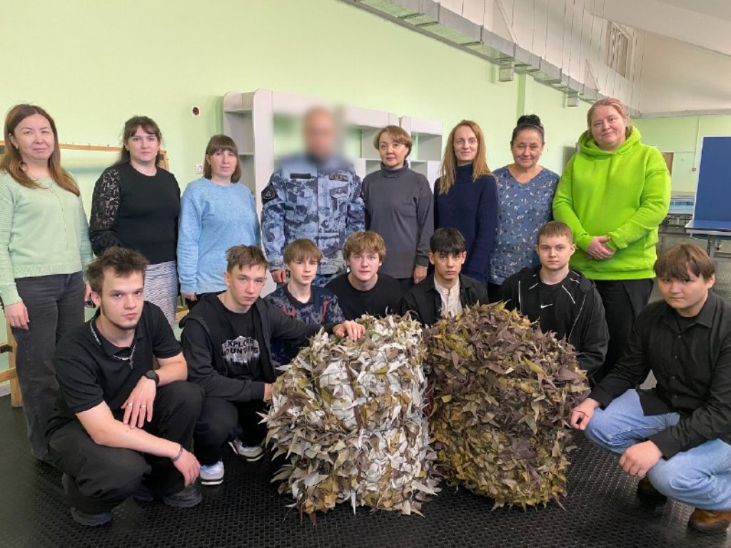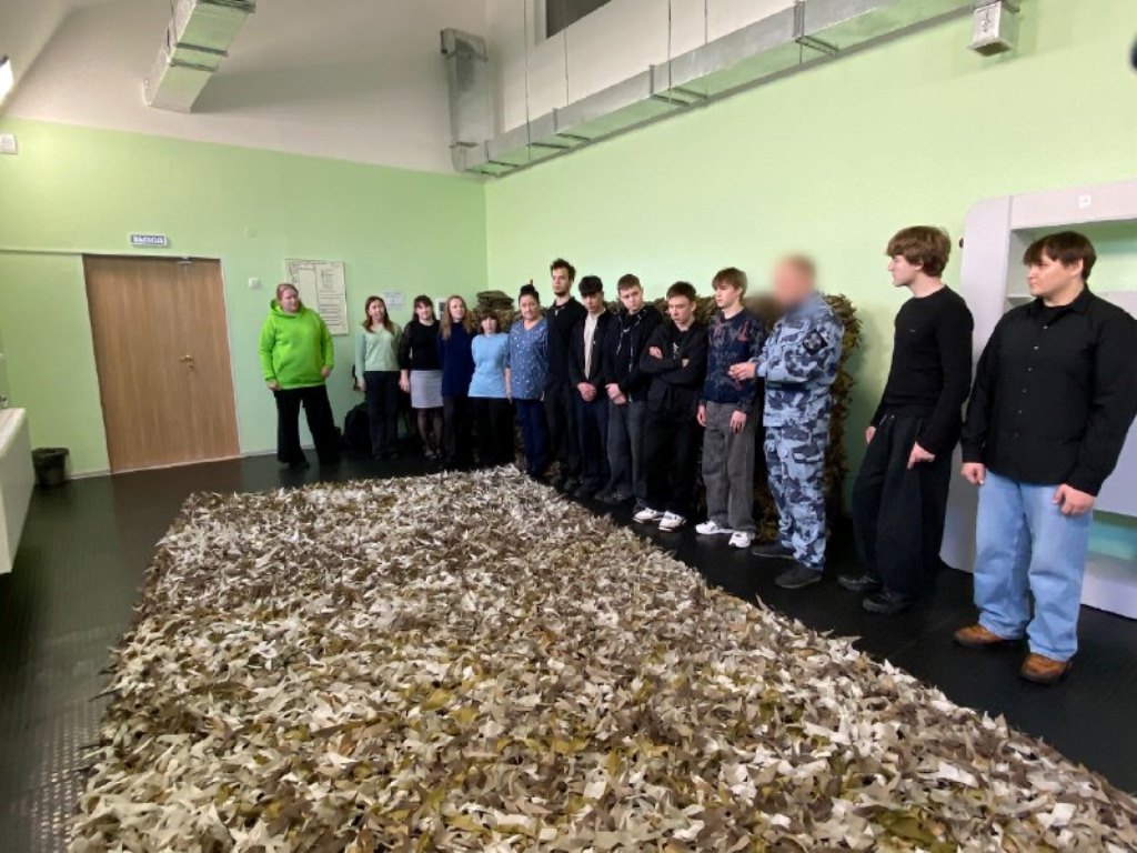 Ребята показали представителю Росгвардии маскировочные сети, которые они изготовили собственными руками для передачи землякам на фронт, и поздравили всех представителей этого непростого направления ведомства с праздником.