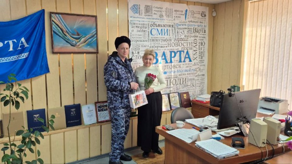 Так, в Нижневартовске офицер ведомства Дмитрий Ловков вручил букет первых весенних цветов главному редактору газеты «Варта» Светлане Коноваловой.