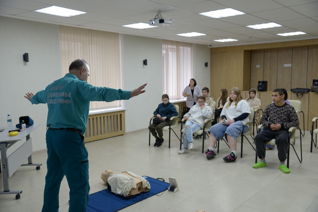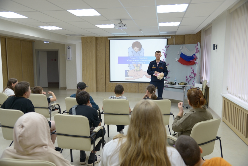 Старший врач территориального Управления капитан медицинской службы Артур Абъятов напомнил ребятам последовательность действий по оказанию помощи при травмах и переломах, объяснил воспитанникам центра, как избежать укуса змей и клещей. Также в ходе лекции представитель ведомства рассказал детям о правилах безопасного поведения на воде.