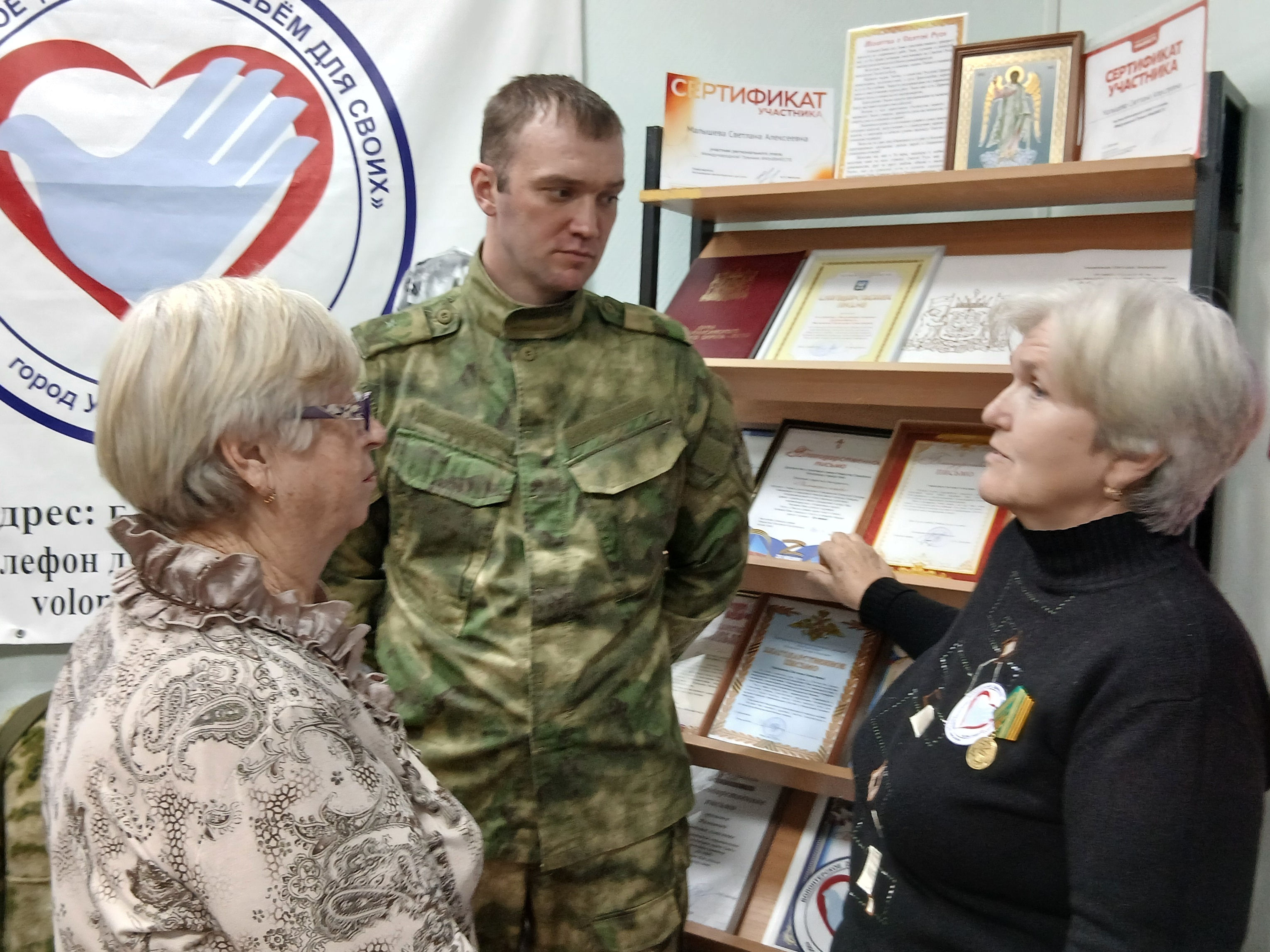 В Урае офицер Управления Росгвардии по ХМАО – Югре майор Дмитрий Нагребельный от имени начальника тероргана полковника полиции Евгения Симакова вручил более 20 благодарственных писем и медалей «За содействие СВО» жителям города и ближайших сельских поселений – деревни Ушья, села Чантырья и поселка Мулымья – волонтёрам движения «Шьем для своих» (или как их именуют местные жители «Волонтерам пошива»).