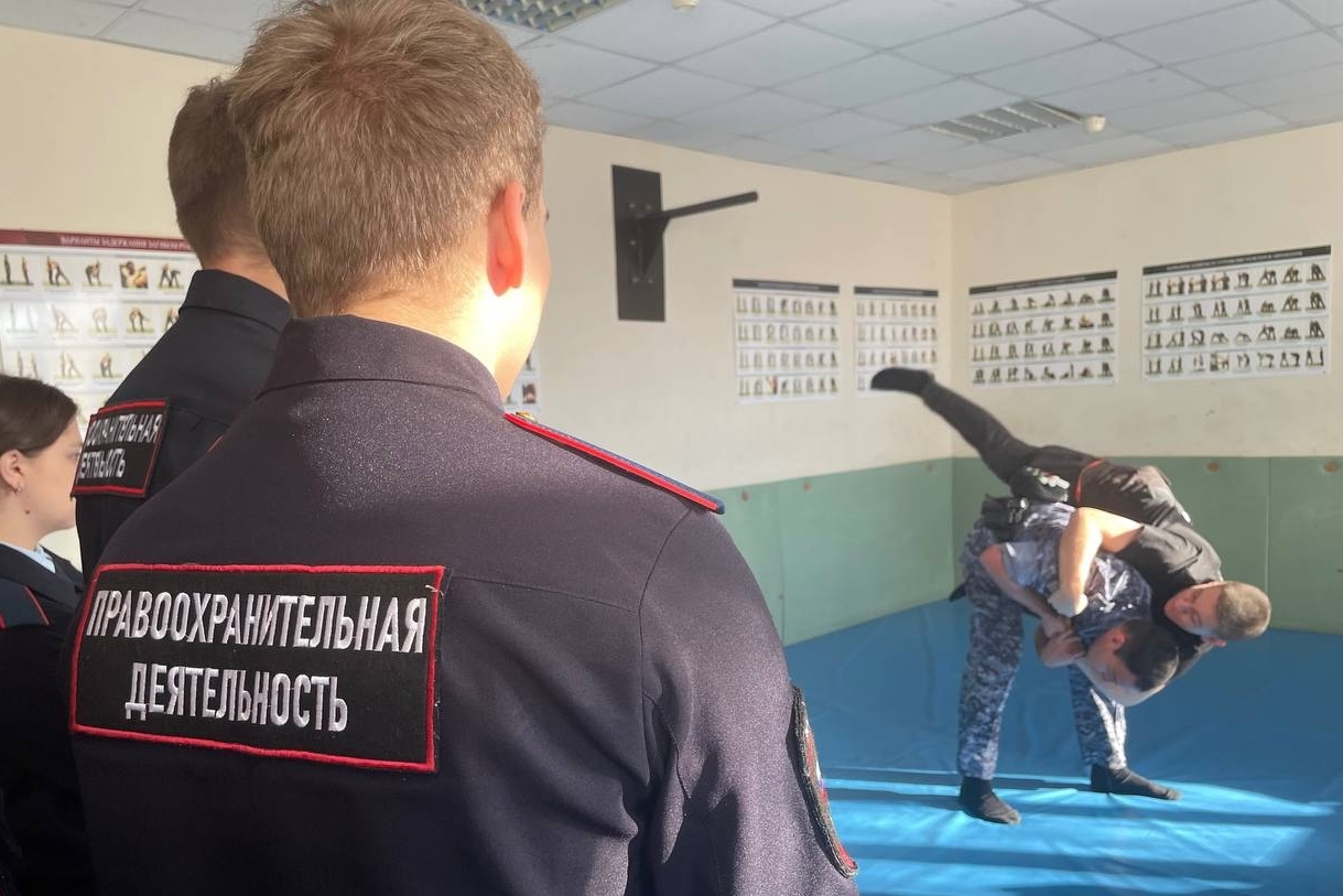 В дальнейшем сотрудники Росгвардии продемонстрировали старшекурсникам приемы самообороны и задержания преступников, специальные средства, экипировку, а также служебный автотранспорт, используемый для патрулирования.