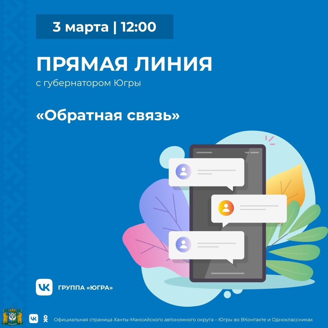 Подключайся к трансляции в аккаунтах губернатора или в группе «Югра» 3 марта в 12:00.