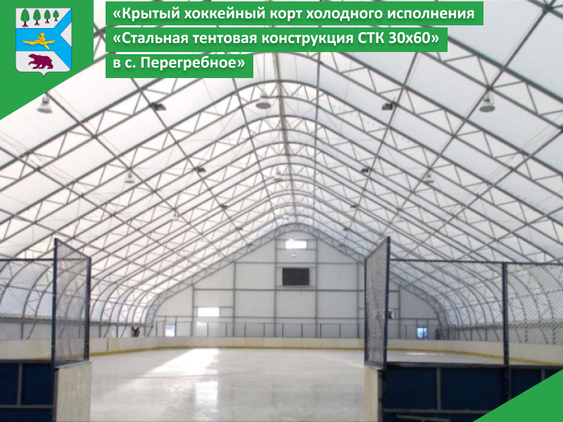 -Обустройство крытого хоккейного корта холодного исполнения стальная тентовая конструкция СТК 30х60 по пер. Школьный, д 1А, село Перегребное;
