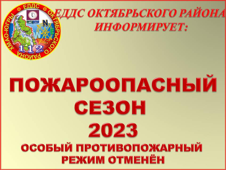 В соответствии с распоряжением Правительства Ханты-Мансийского автономного округа – Югры от 13 сентября 2023 года № 607-рп, с 14 сентября на всей территории автономного округа отменён особый противопожарный режим, который действовал с 28 апреля 2023 года.