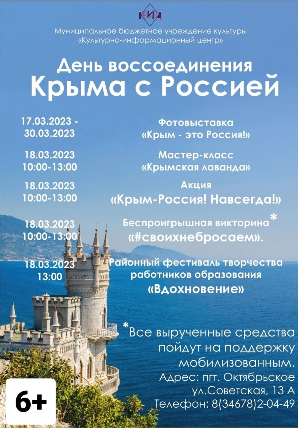 18.03.2023 (10:00 - 13:00) - акция «Крым - Россия! Навсегда!»;