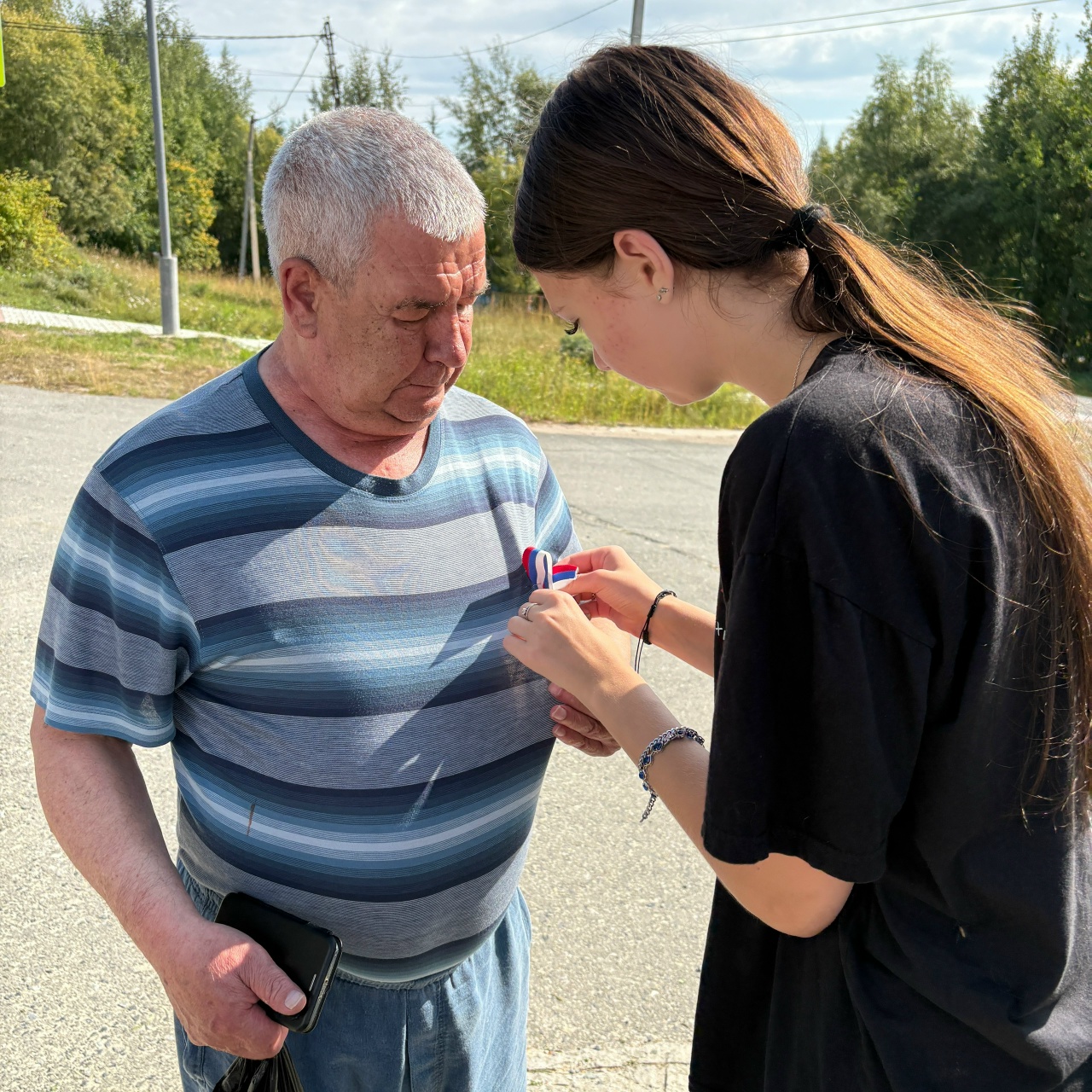 Волонтеры района вручали землякам ленточки-триколоры, рассказывали об истории флага России, устраивали познавательные викторины, поздравляли с Государственным праздником.