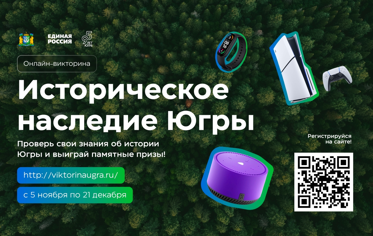 Принять участие можно до 21 декабря по ссылке: viktorinaugra.ru/. Итоги подведут 25 декабря. Победителей и обладателей более 100 призов определит генератор случайных чисел.