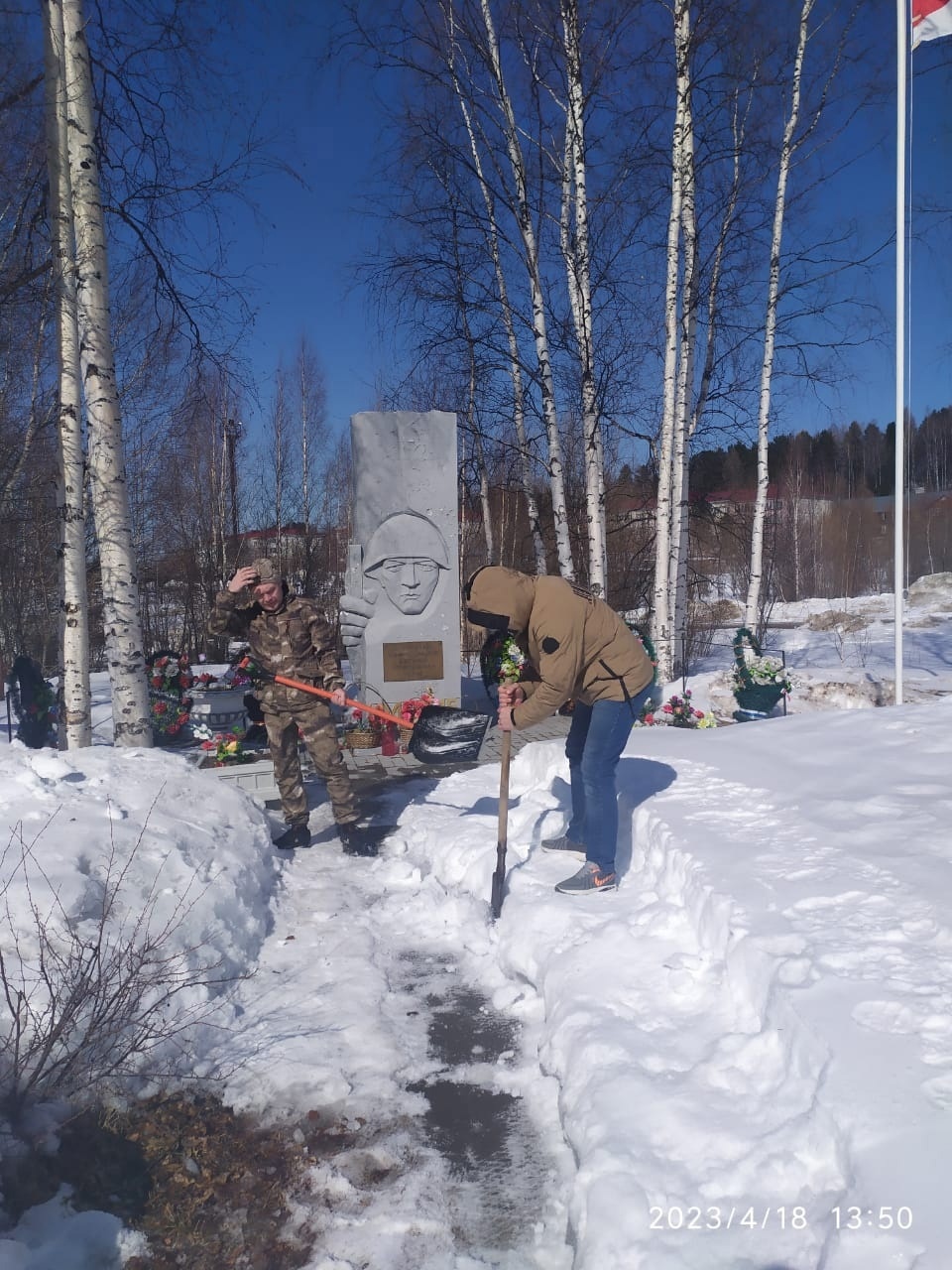 Так, вчера активисты из Андры и Октябрьского расчистили от снега территорию у памятника воинам, павшим в Великой Отечественной войне, в Андре. Это уже повторная акция волонтеров. Аналогичную работу они провели в преддверии праздника дня Внутренних Войск Российской Федерации.