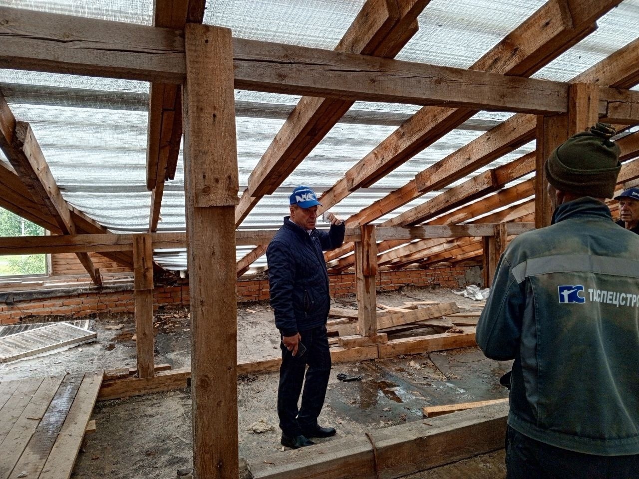 На данный момент на объекте капитального ремонта специалисты подрядной организации завершили демонтаж кровли, и перешли к монтажным работам. В частности, выполняют обустройство обрешетки и укладку пароизоляции. На подходе - профнастил. Также провели осмотр работ по выемке грунта по периметру здания. Здесь предстоит уложить гидроизоляцию и подготовить грунт под отмостку. Помимо этого, приняли решение о полном демонтаже оконных блоков и их замене.