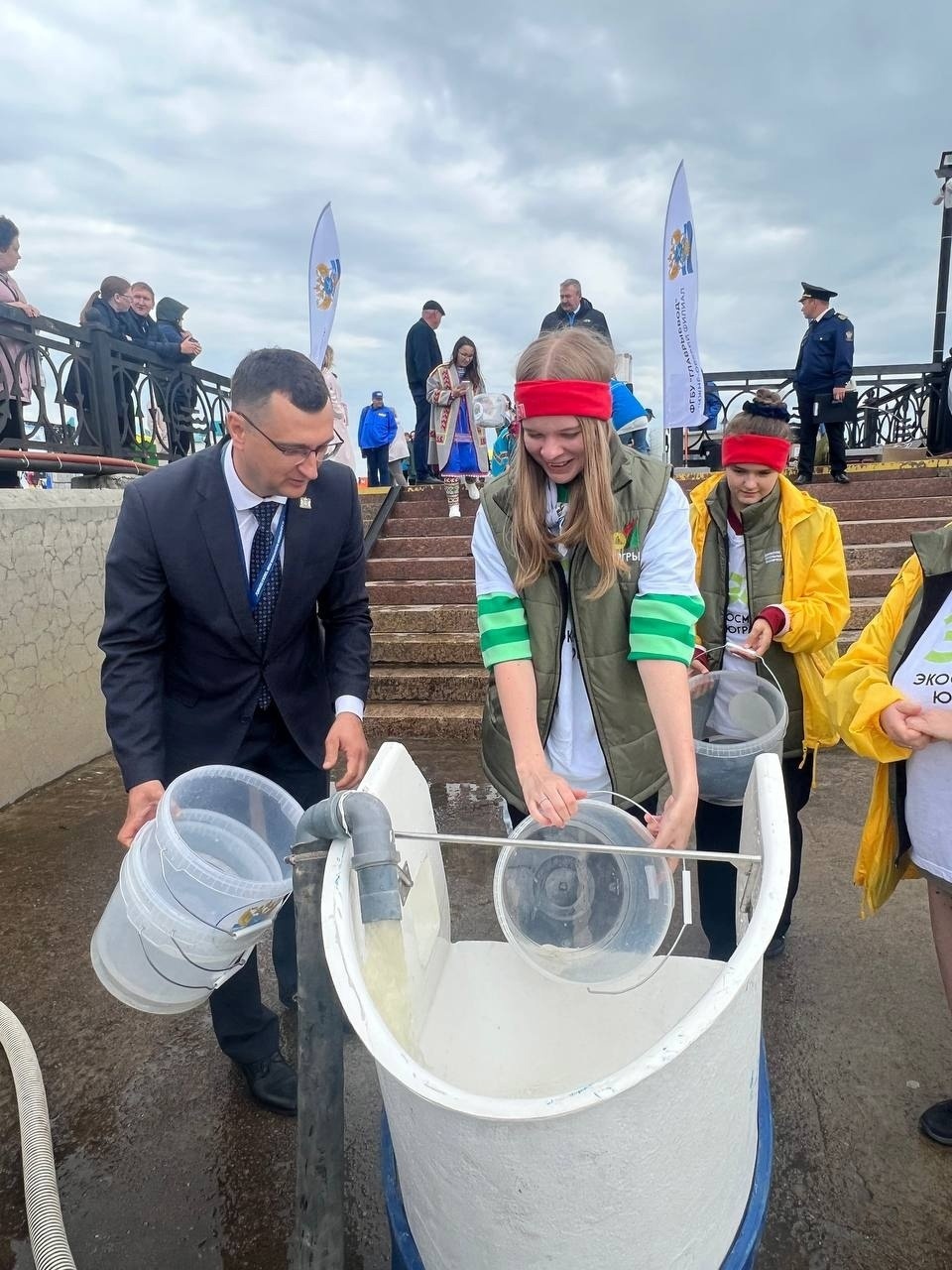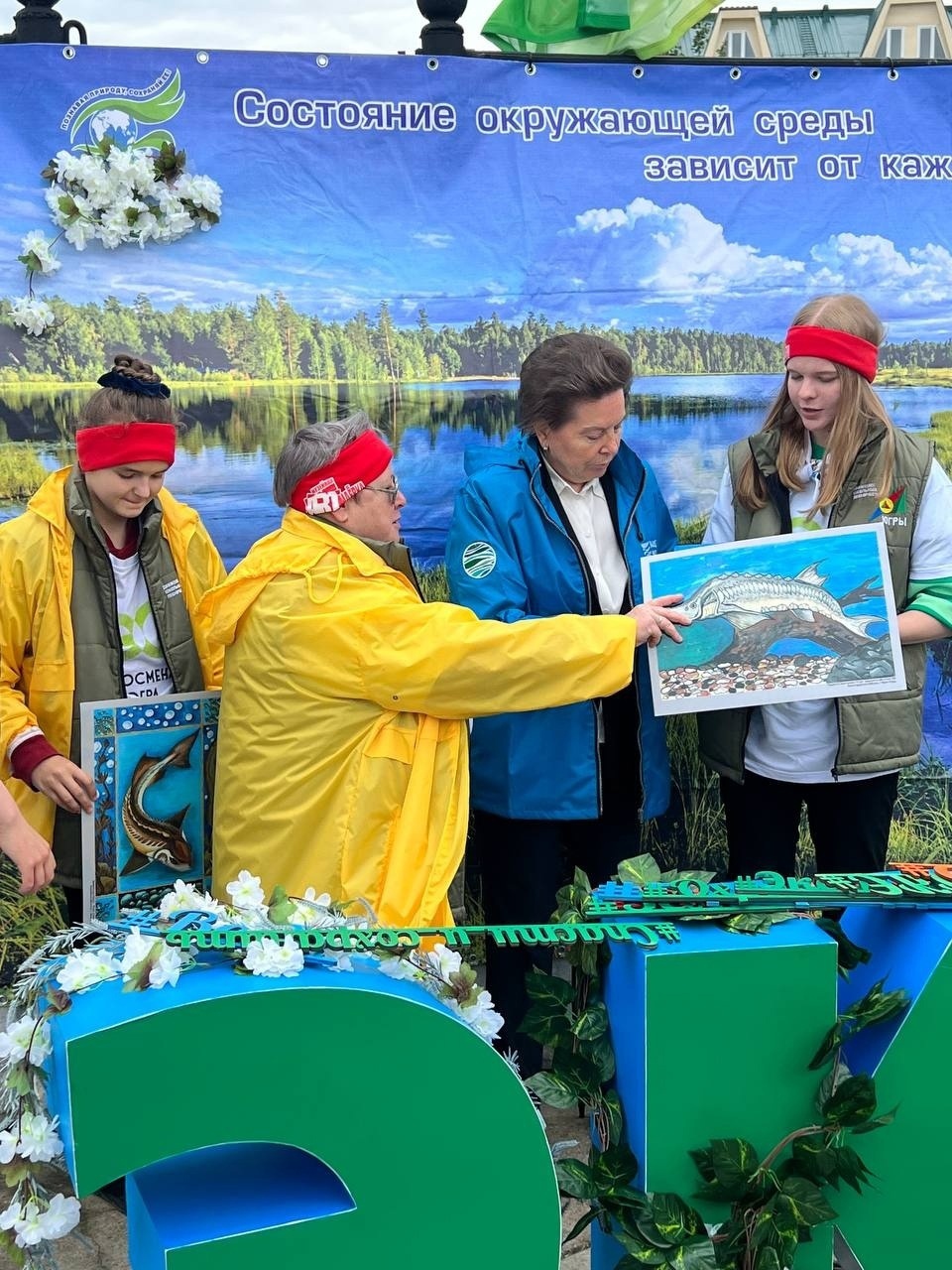 В мероприятии, приуроченном к подведению итогов экологического проекта «Расти, осетр!», приняли участие Губернатор Югры Наталья Комарова, главы муниципальных образований Югры, жители и гости Ханты-Мансийка, воспитанники экологических объединений, в том числе и эковолонтеры школьного лесничества «Родник» поселка Талинка.