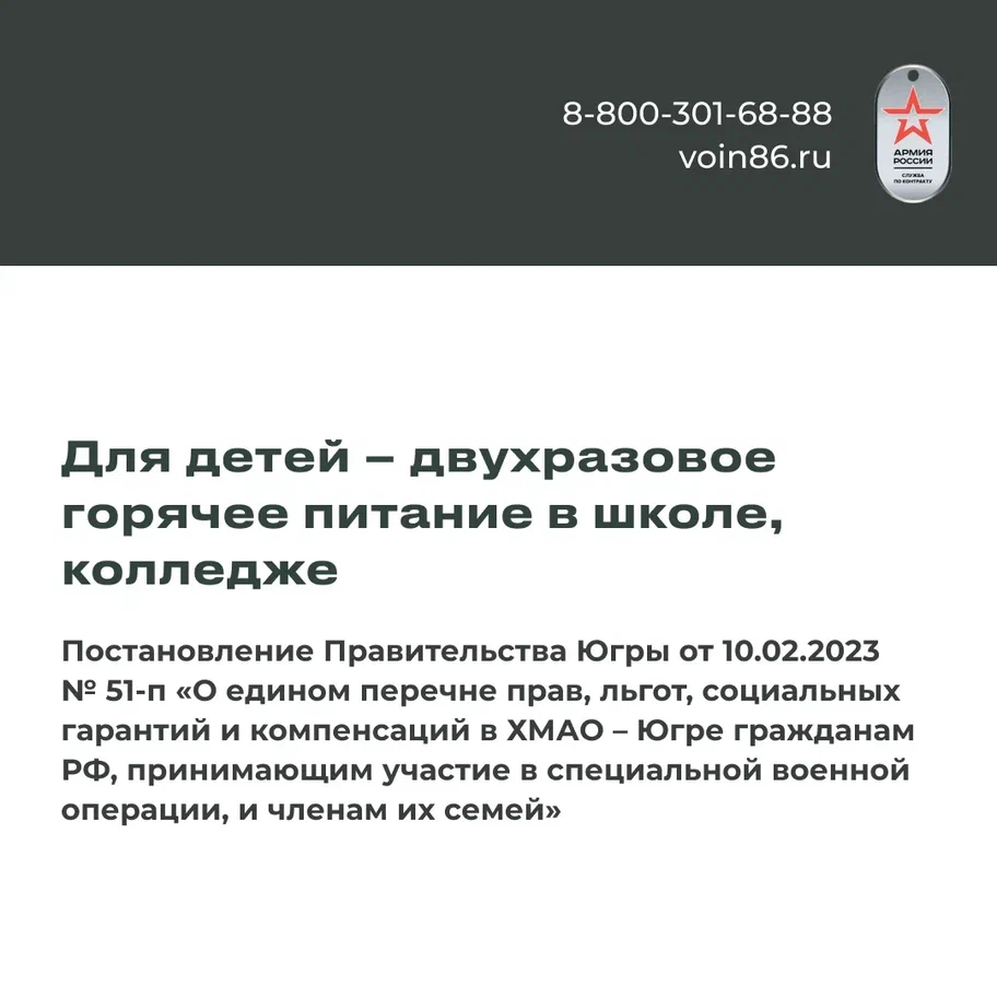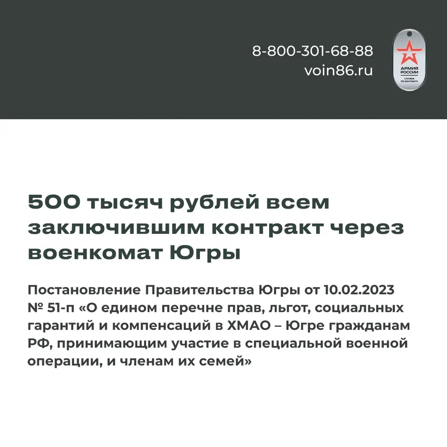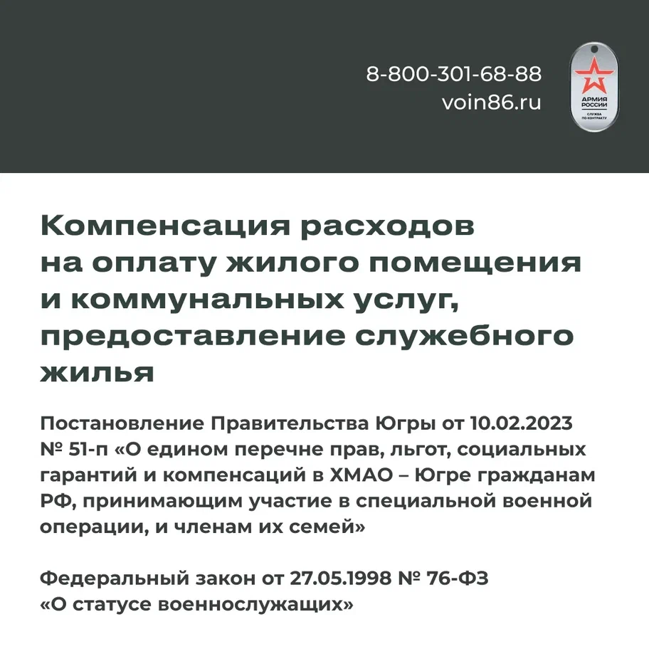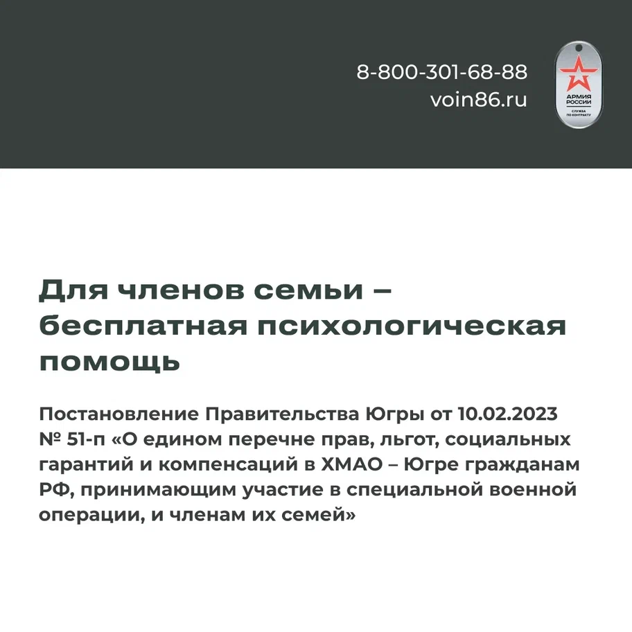 Подробнее – на сайте voin86.ru и по телефонам горячей линии 8 800 301-68-88 или 117