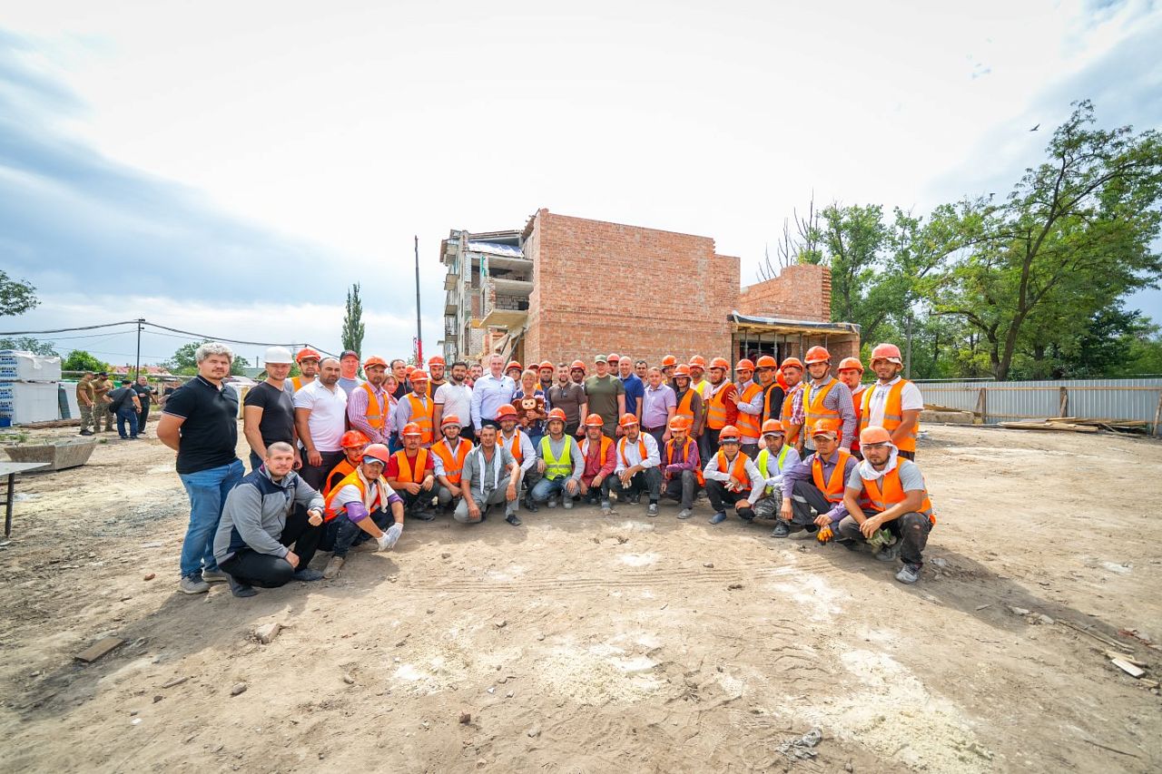 Главы регионов лично поздравили строителей с профессиональным праздником и поблагодарили за нелегкий труд в сложных условиях, ведь на территории еще ведутся обстрелы.