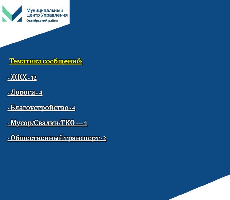 Напомним, чтобы ваше сообщение поступило на рассмотрение в МЦУ, его необходимо оставить в госпабликах администрации Октябрьского района в соцсетях или написать через платформу обратной связи «Госуслуги.Решаем вместе».