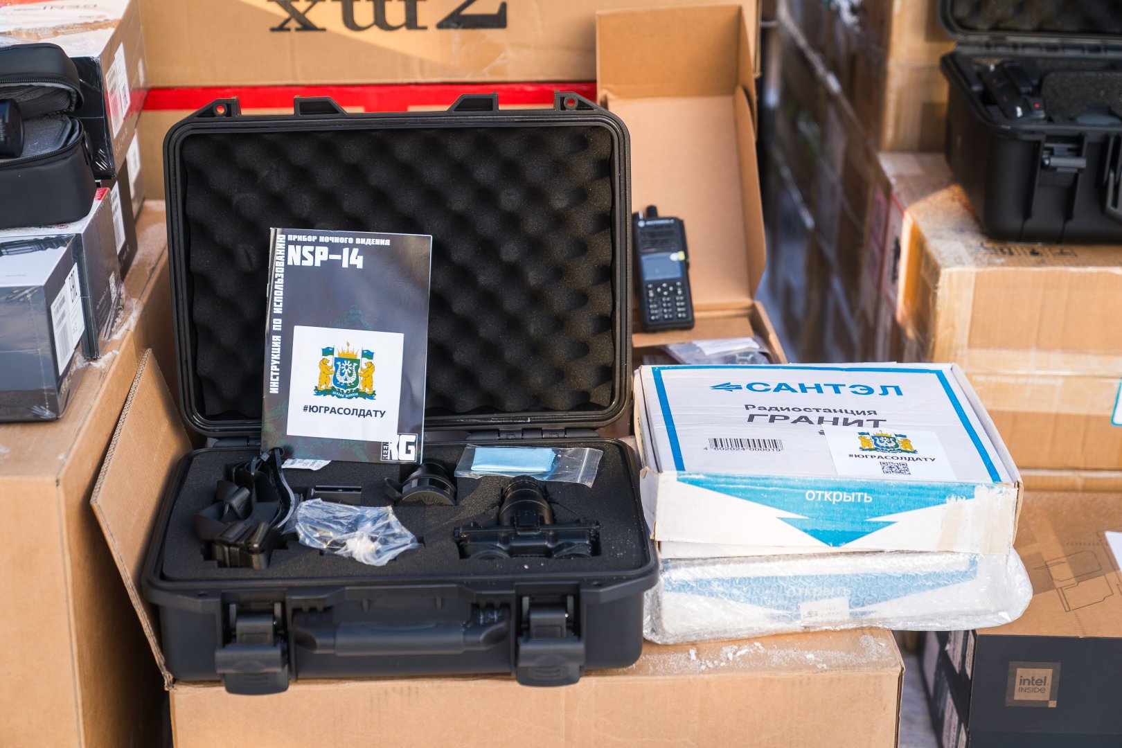 «Мы отправляем в зону специальной военной операции имущество, которое было приобретено по заявкам военных частей, более 100 наименований. Мы отправляем снегоболотоходы «Росомаха», они укомплектованы уже проверенными четырехтактными двигателями. В составе имущества также тепловизионные прицелы, лазерные дальномеры, квадрокоптеры, противодронные ружья», — сказал представитель организатора сбора и отправки груза Антон Козлов.