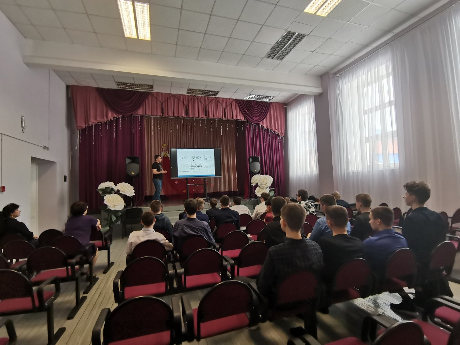 Ребята активно задавали вопросы о языках и способах программирования, востребованности специалистов и даже о создании компьютерных игр. Словом, лектор и слушатели были на одной волне. Заинтересовало школьников и серьёзное увлечение Александра Викторовича созданием электронной музыки, его деятельность в качестве ди-джея.