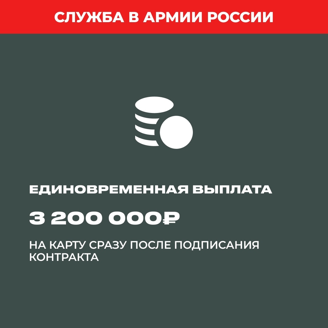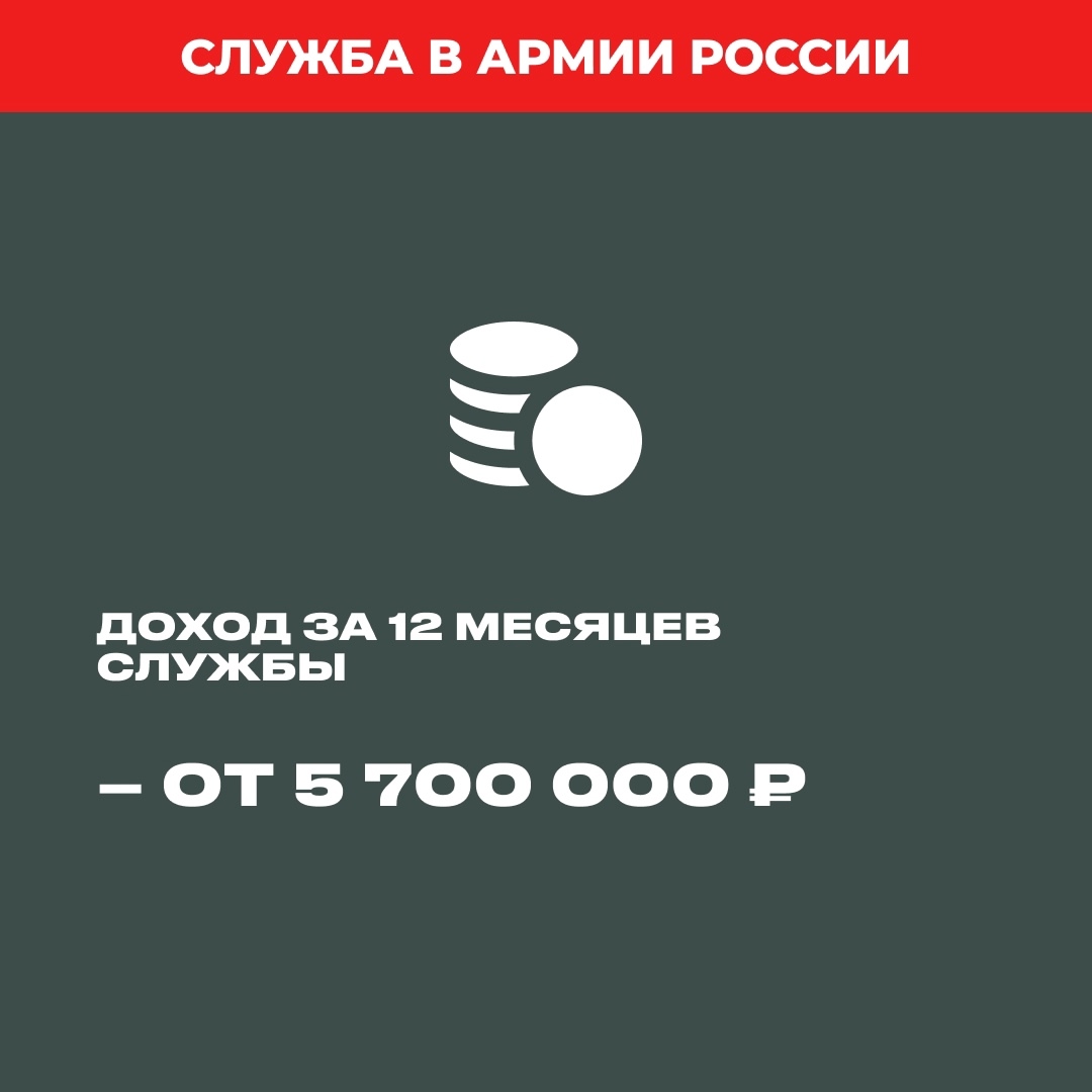 24 июля 2025При заключении контракта с Минобороны РФ в Югре ты получишь 3 200 000 рублей на карту сразу после подписания документов. Кроме того, ежемесячное довольствие, выплаты при получении наград и ранений, больше 30 мер социальной поддержки военнослужащих и их семей. Полный доход за 12 месяцев службы составит от 5 700 000 рублей.