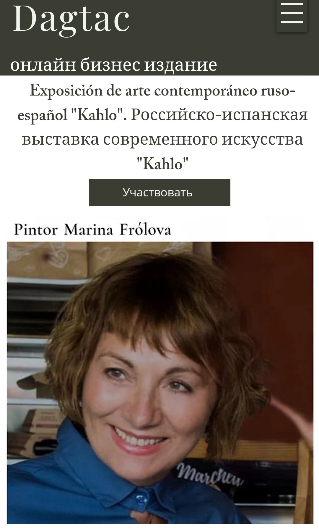 "Сентябрь продолжает радовать своими плодами - я стала членом Евразийского Художественного Союза! Осталось дождаться подтверждающего удостоверения. Также продолжается Российско-испанская выставка современного искусства "Kahlo", где участвуют четыре моих картины", - делится Марина Фролова.