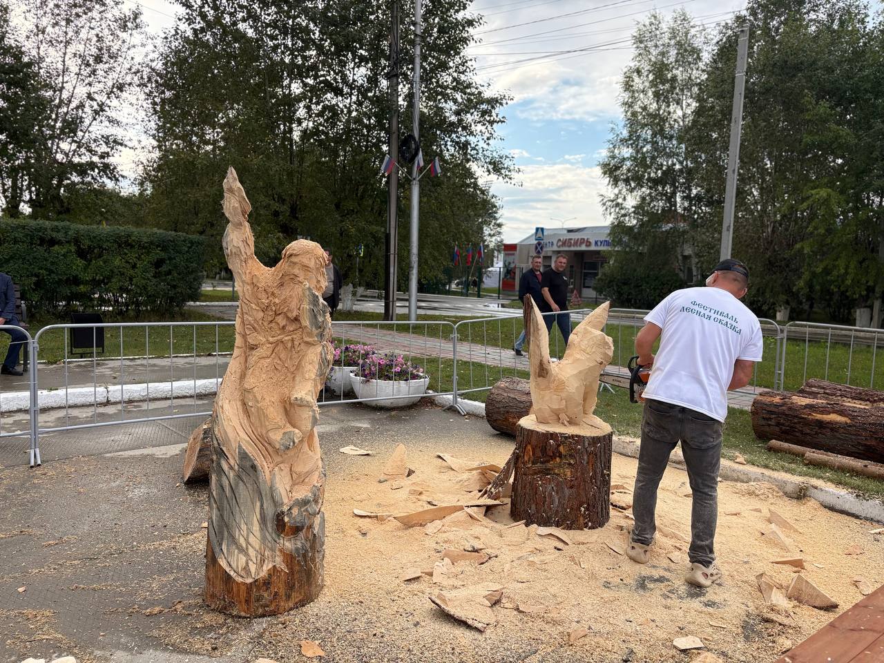 Параллельно с соревнованием проходил фестиваль деревянной парковой скульптуры «Лесная сказка». Мастера резьбы по дереву из разных уголков России сотворили чудесные скамьи на тему «Лесная легенда». Каждое изделие уникально и станет украшением городского парка культуры и отдыха «Сибирь» в Советском.