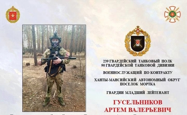 Артем – житель поселка Мортка Кондинского района, ему 34 года. Служит с декабря 2022 года по контракту с Минобороны РФ в 239-м гвардейском танковом полку 90-й гвардейской танковой дивизии. В его арсенале две медали «За отвагу», медали «За спасение погибавших», «За боевое отличие», «За воинскую доблесть» II степени.