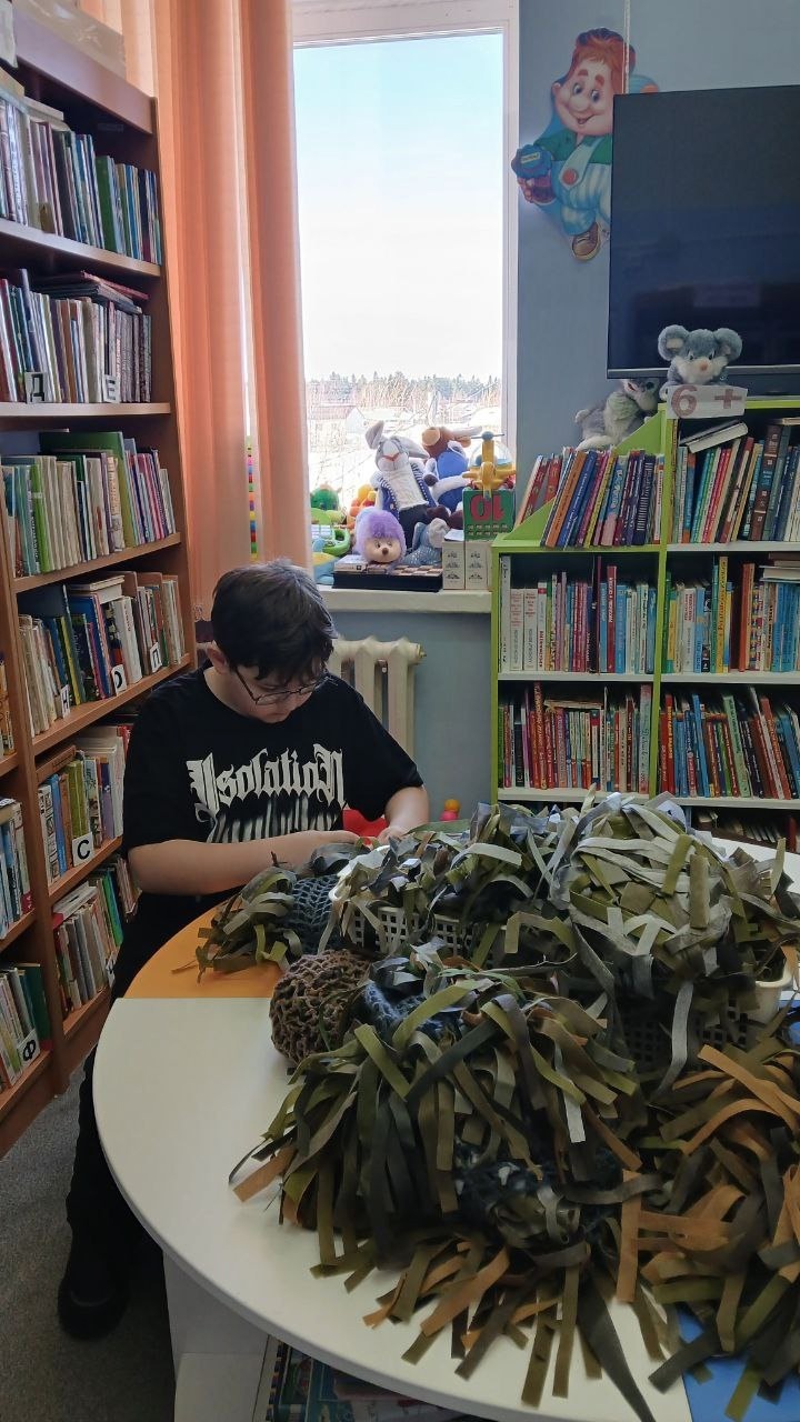 Другая группа ребят из Чемашинской школы также активно подключилась к акции. Вооружившись основой и лентами, они принялись плести маскировочные сети и нашлемники, которые защищают бойцов от вражеских глаз. Ребята приготовили письма-благодарности, адресованные военным, куда вложили свои детские рисунки и сердечные пожелания.