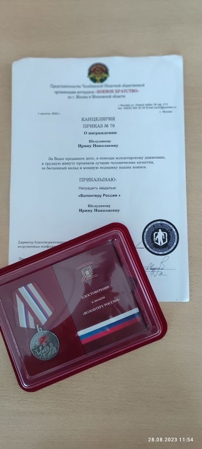 1 сентября 2023Торжественная церемония вручения заслуженной награды прошла в городе Белоярский. Учредителем медали является Областная общественная организация ветеранов «Боевое братство» по Москве и Московской области. В награждении приняли участие представители Белоярского городского отделения Российского союза ветеранов Афганистана «Рейд».
