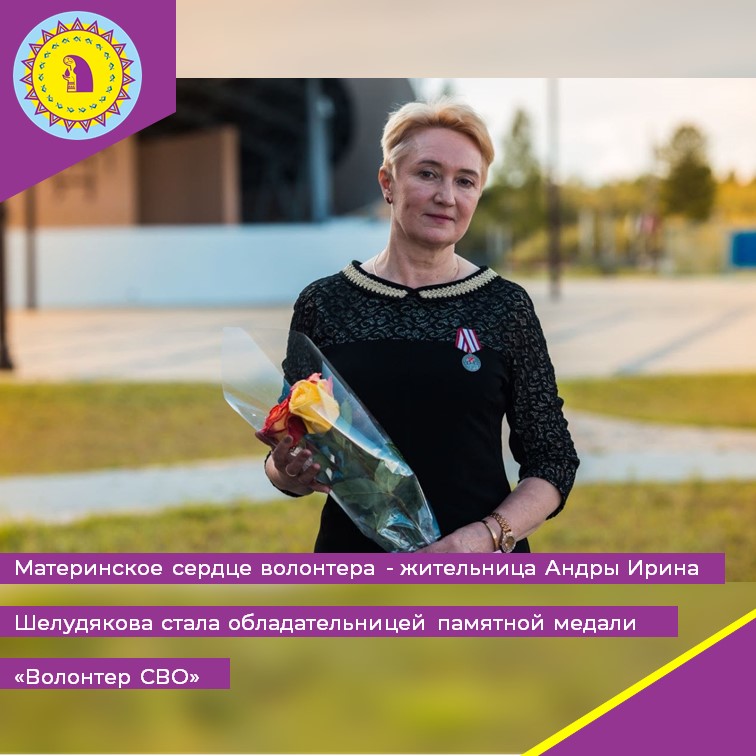 Материнское сердце волонтера - жительница Андры Ирина Шелудякова стала обладательницей памятной медали «Волонтер СВО»