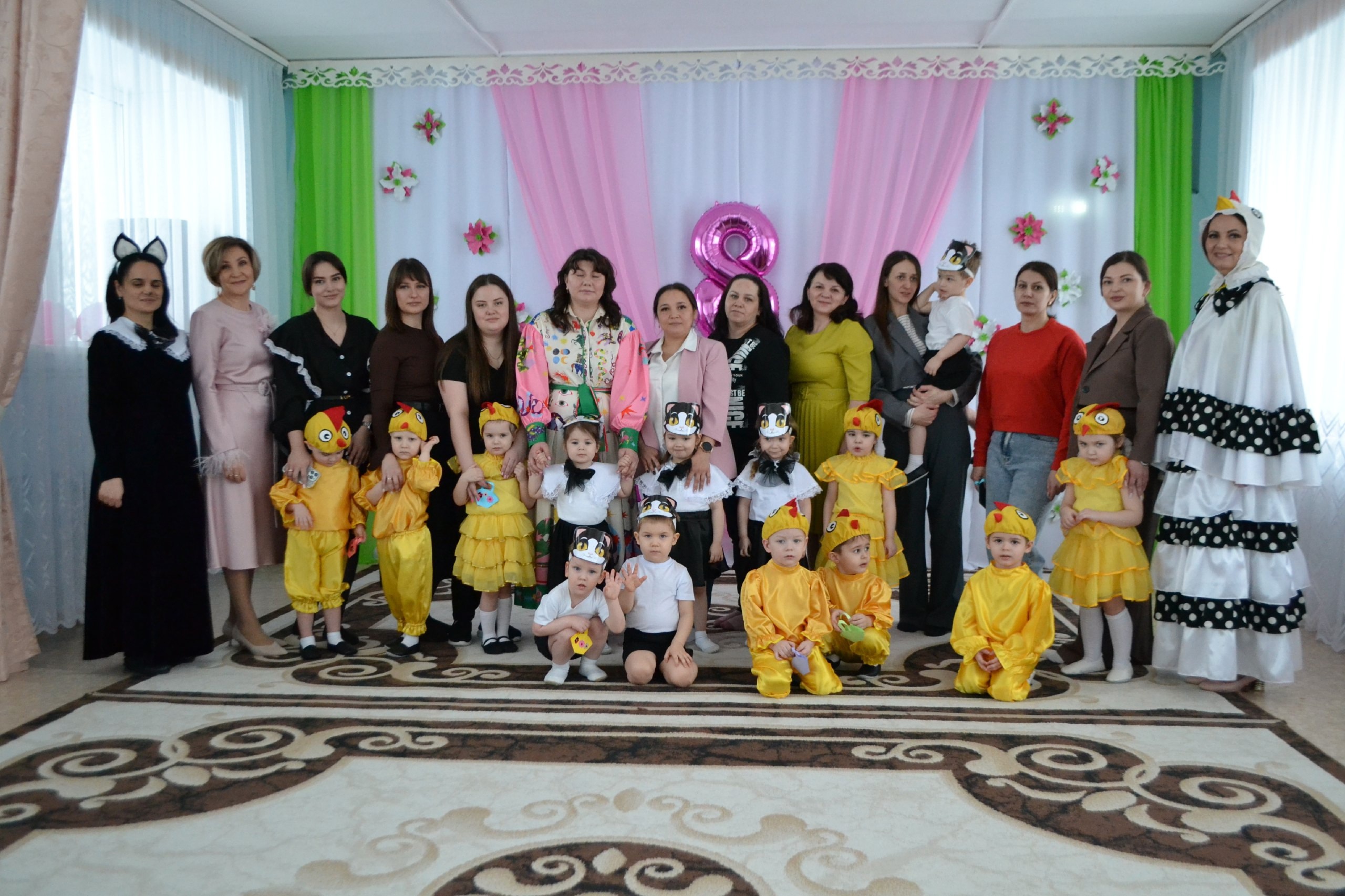В детских садах состоялись праздничные утренники. Дети пели песни мамам и бабушкам, танцевали, рассказывали стихи и конечно дарили открытки, сделанные своими руками.