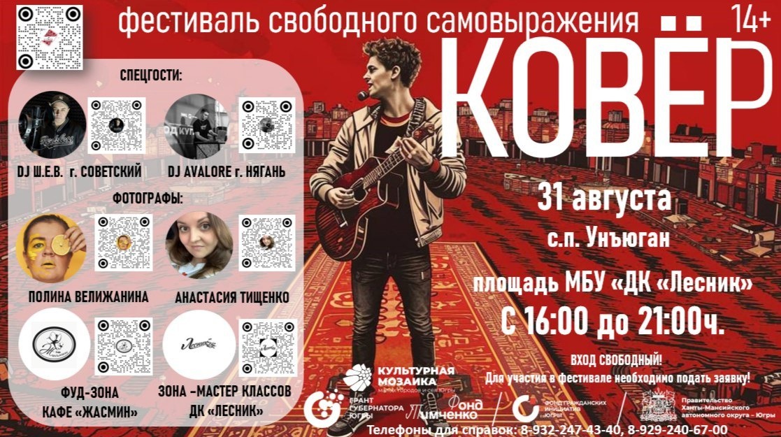 31 августа Октябрьский район ждет крутой фестиваль свободного самовыражения. «Ковер» - это место, где молодежь от 14 лет может выразить себя в уютной и неформальной обстановке.