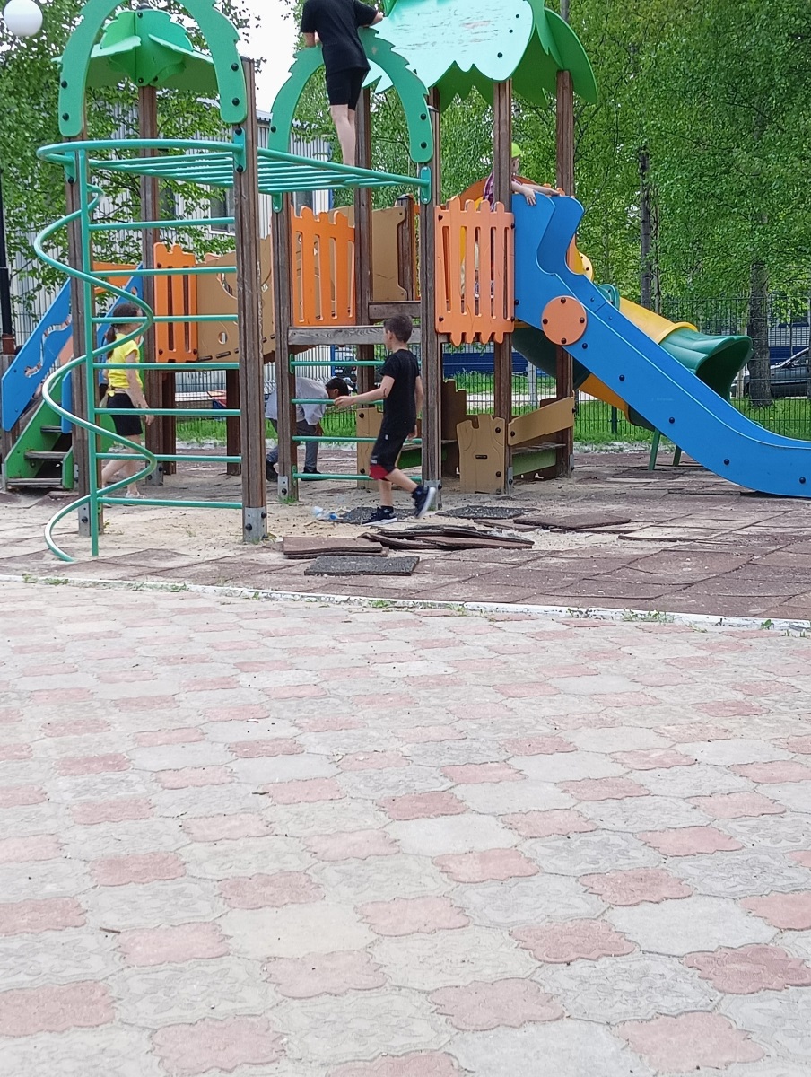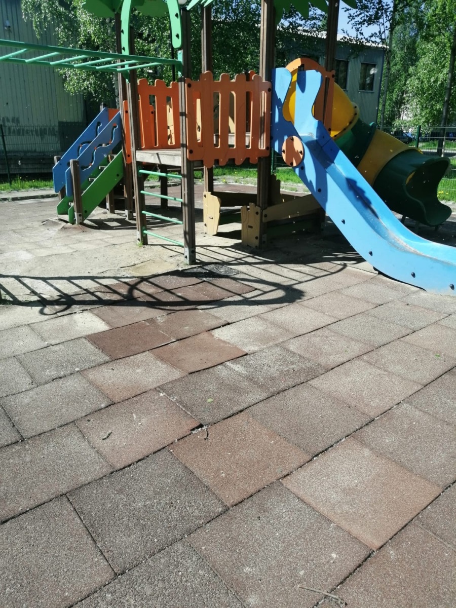 Жительница Талинки в социальной сети во ВКонтакте сообщила о повреждении покрытия на детской площадке.