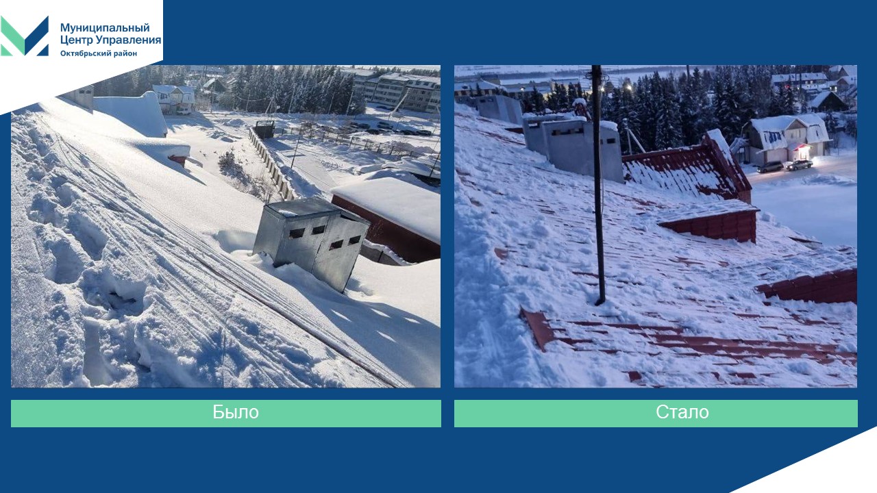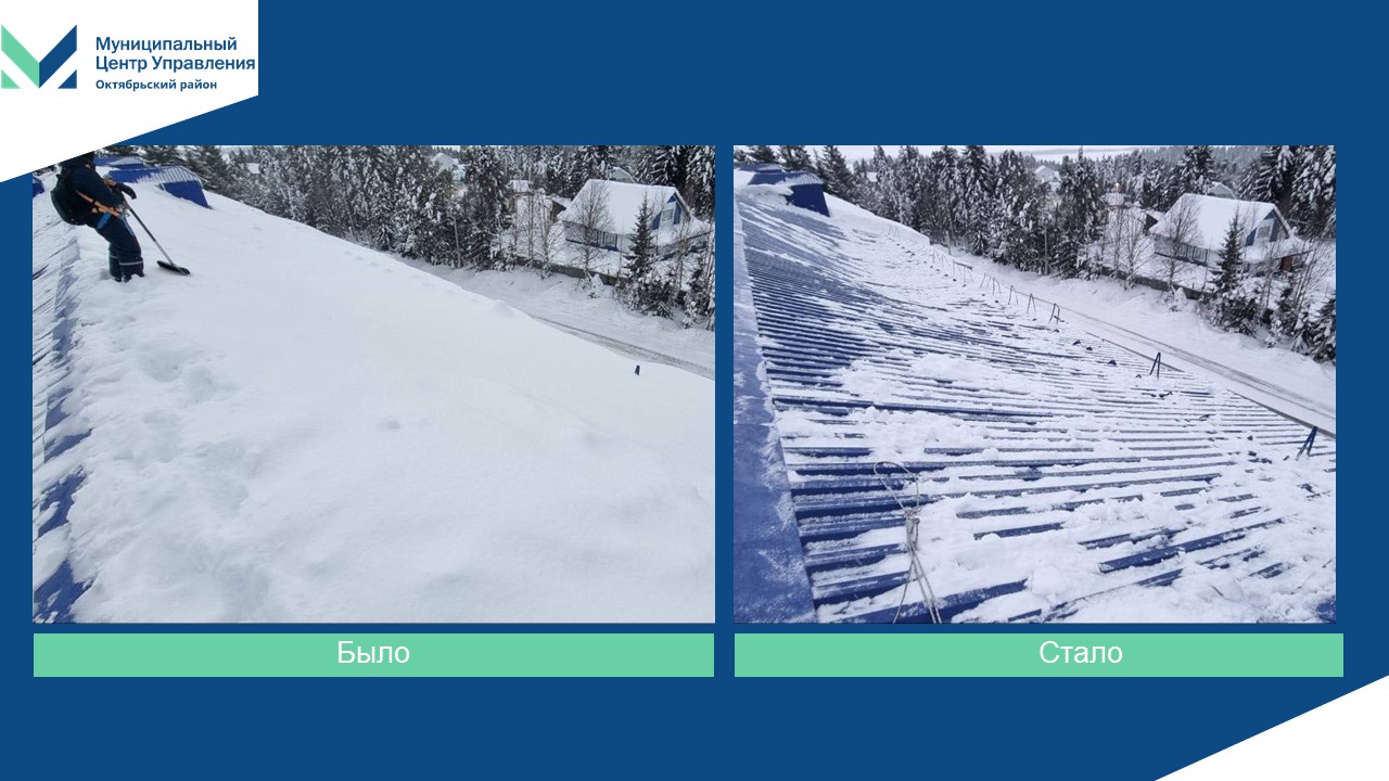 Уже на следующей день по указанному адресу управляющая компания организовала очистку кровли от снега. Работу выполнял индивидуальный предприниматель Игорь Николаев.