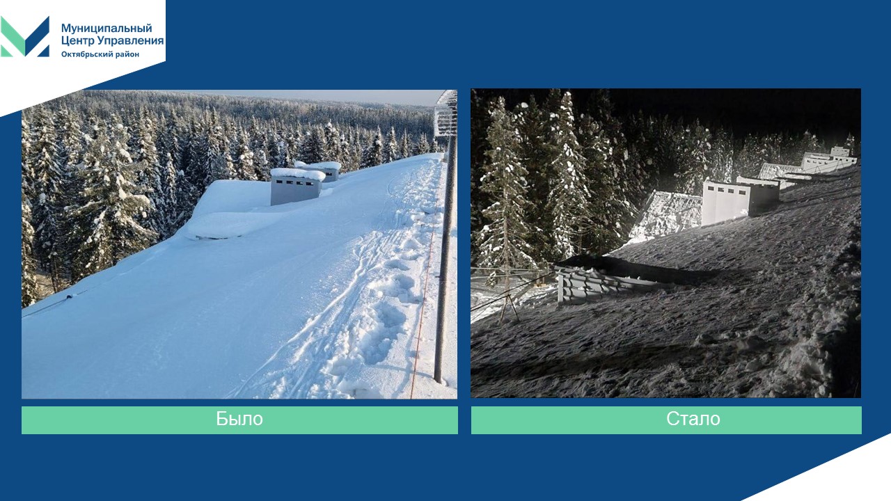 Перед очисткой крыш от снега и сосулек в целях безопасности прилегающая территория и тротуары огораживаются сигнальной лентой. На особом контроле находятся работы на кровлях зданий, выходящих на пешеходные зоны, зоны входов в подъезды, детские и игровые площадки.