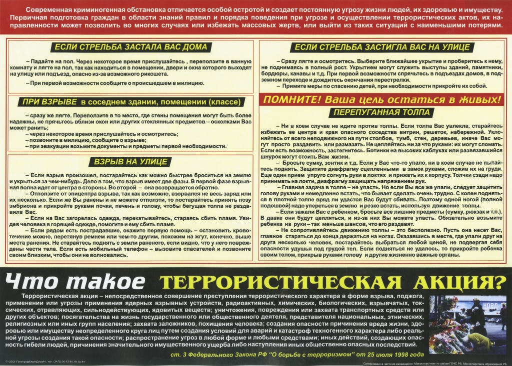 Случайно узнав о готовящемся теракте, немедленно сообщите об этом в правоохранительные органы.