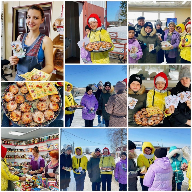 Ребята-волонтёры Большелеушинской школы напекли куличиков с изюмом, сами сделали очень красивые и теплые открытки и вручали их односельчанам.