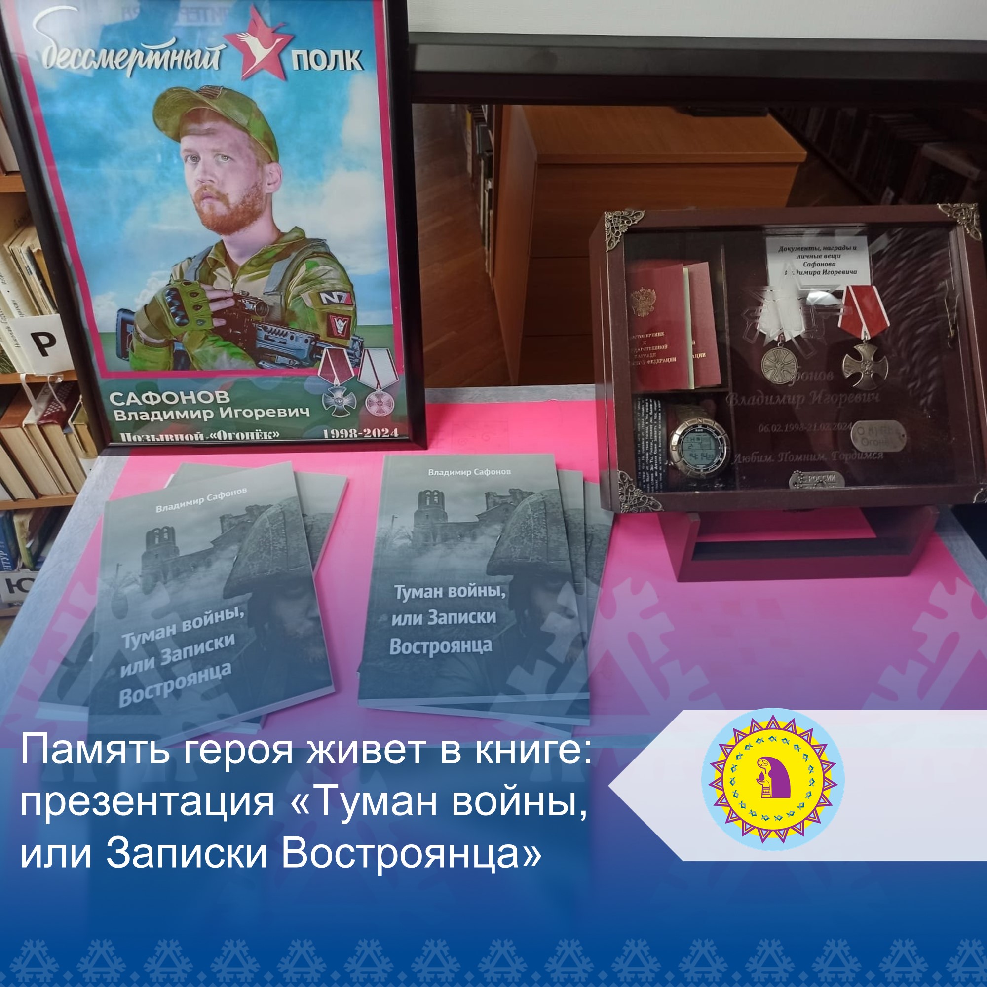 7 февраля 2025В Шеркальской модельной сельской библиотеке состоялась презентация книги «Туман войны, или Записки Востроянца», автором которой является Владимир Сафонов. Эта встреча была приурочена ко дню рождения Владимира, которому 6 февраля исполнилось бы 27 лет.